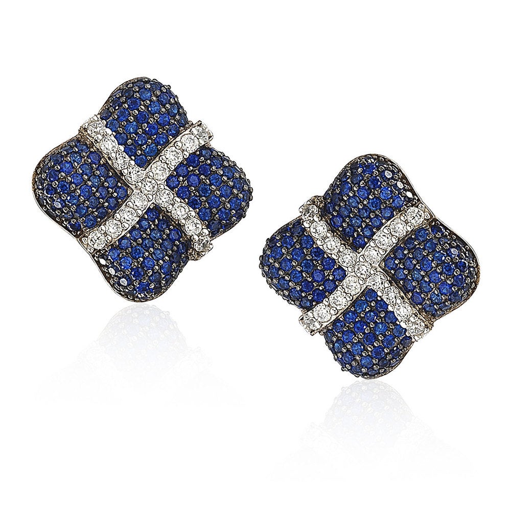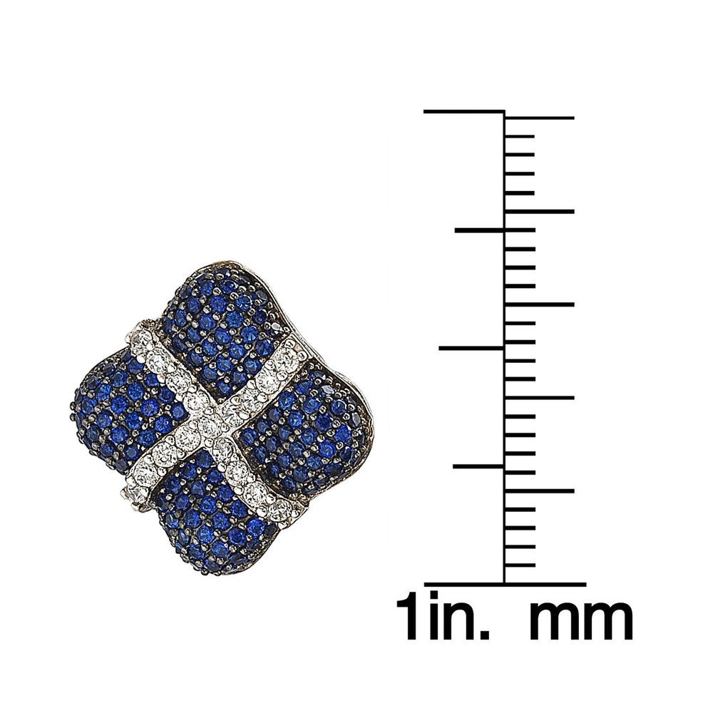 Suzy Levian Sterling Silver Blue and White Sapphire Wrapped Cushion Earrings