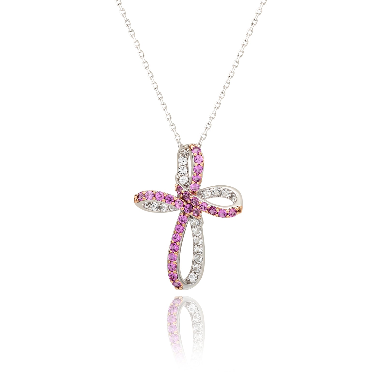 Suzy Levian Sterling Silver Pink & White Sapphire & Diamond Accent Cross Pendant