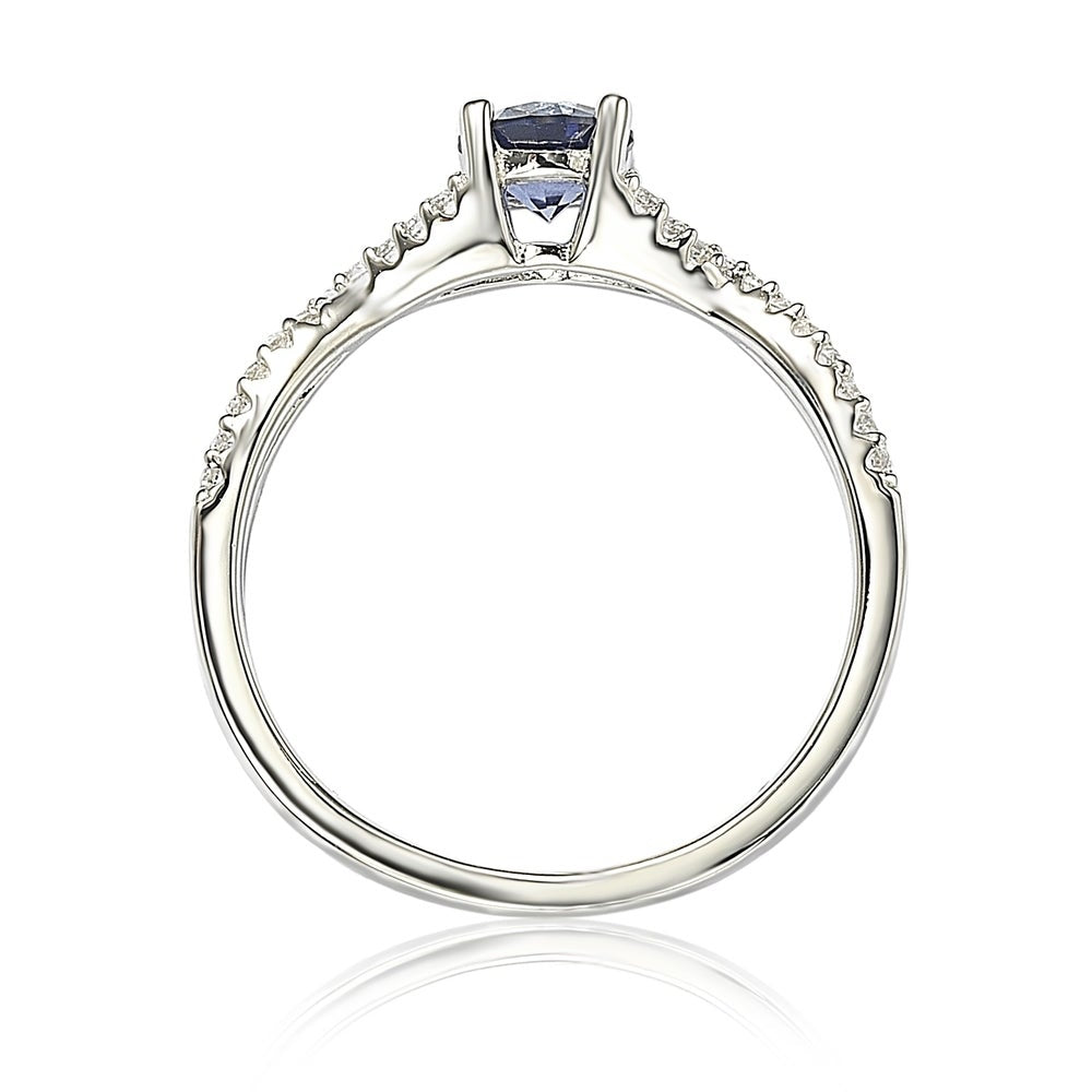Enjoy sapphire hues with this petite crossover ring featuring a round cut blue sapphire center stone (0.50ct), surrounded by twists of created white sapphire pave-set across the band of the ring. This beautiful ring is from Suzy Levian's latest collection, "Petite Perfects", designed for ladies who prefer a more slimmed, less bulky look, whether it's an extra accessory in the workplace or an addition pop of color to your night-time ensemble! This ring is designed by Suzy Levian with a message. By creating jewelry that is beautiful inside and out, Suzy Levian's message is revealed through a hidden secret signature diamond (.02ct) set in the shank of this ring to empower women to discover their inner strength, power and beauty. 'Together we can inspire the world to appreciate the diamond in ourselves.' - Suzy Levian