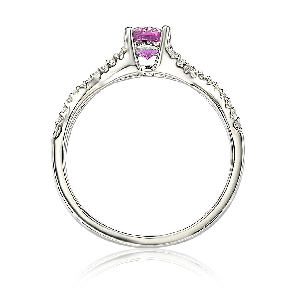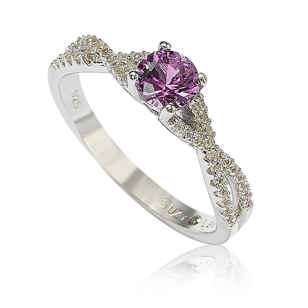This beautiful petite crossover ring featuring a round cut pink sapphire center stone (0.50ct), surrounded by twists of created white sapphire pave-set across the band of the ring. This beautiful ring is from Suzy Levian's latest collection, "Petite Perfects", designed for ladies who prefer a more slimmed, less bulky look, whether it's an extra acceserry in the workplace or an addition pop of color to your night-time ensemble! This ring is designed by Suzy Levian with a message. By creating jewelry that is beautiful inside and out, Suzy L.'s message is revealed through a hidden secret signature diamond (.02ct) set in the shank of this ring to empower women to discover their inner strength, power and beauty. 'Together we can inspire the world to appreciate the diamond in ourselves.' - S.L.