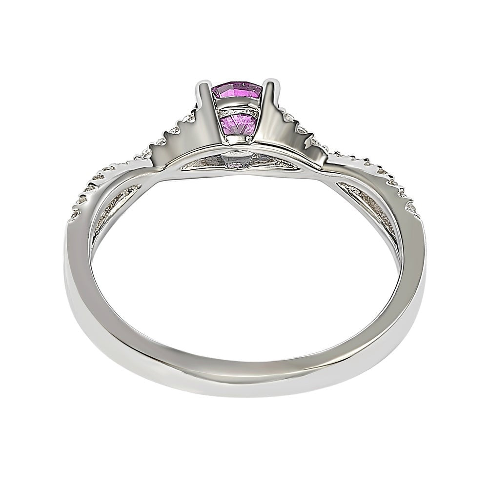 Suzy Levian Sterling Silver Pink Sapphire (0.70cttw)& Diamond Accent Crossover Twist Ring