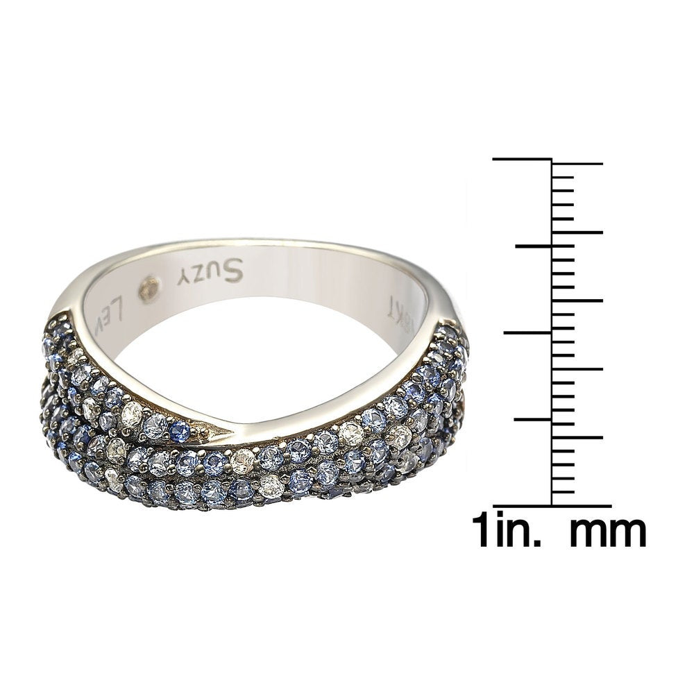 Suzy Levian Sterling Silver Blue & White Sapphire & Diamond Accent Petite Pave Crossover Ring