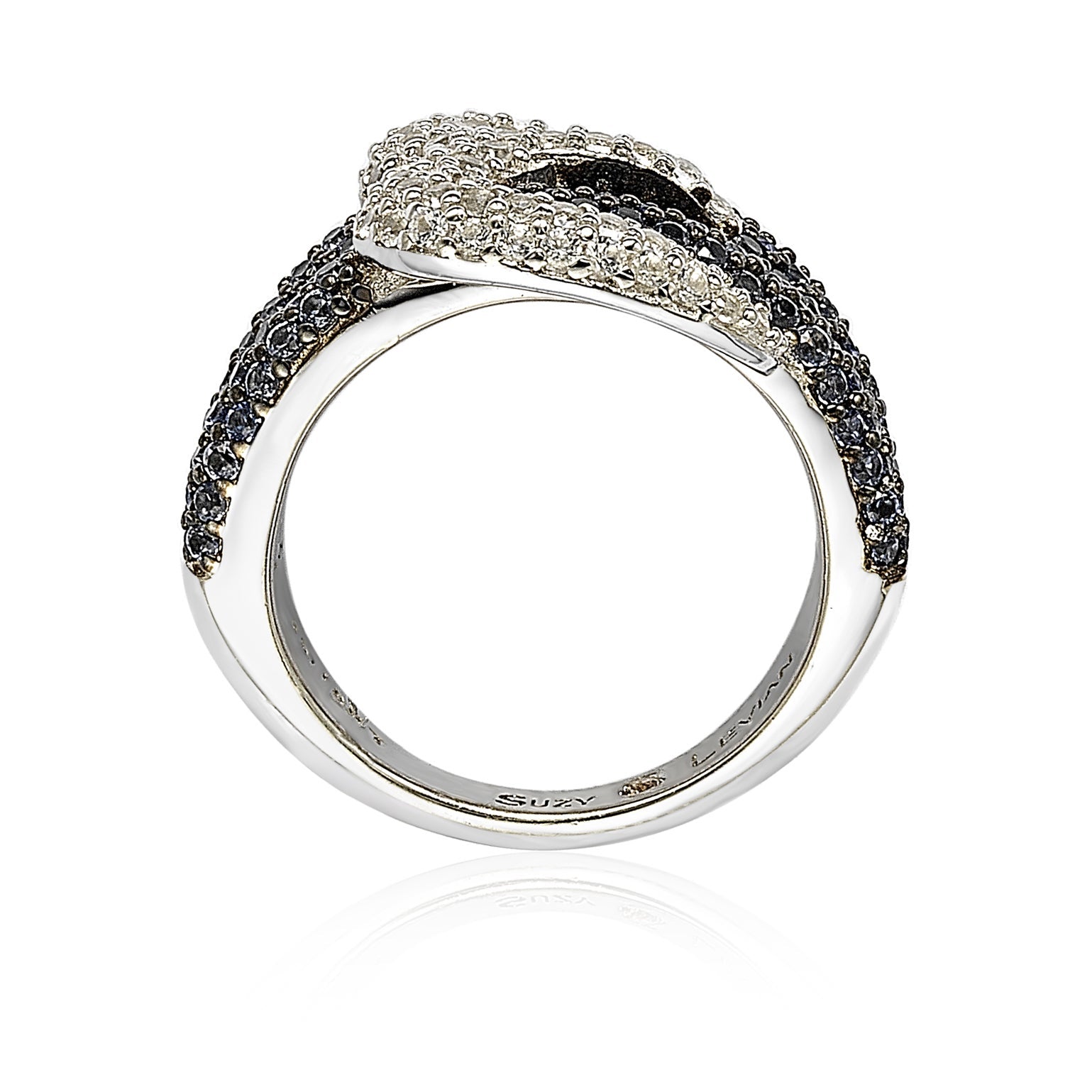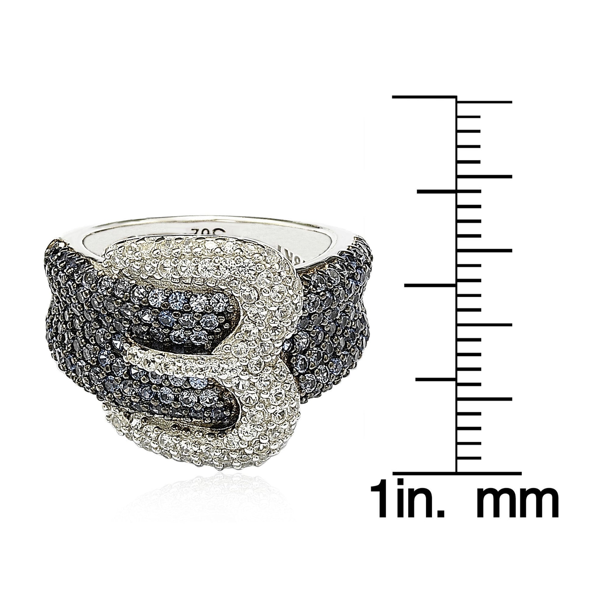 Suzy Levian Sterling Silver Blue & White Sapphire & Diamond Accent Buckle Ring