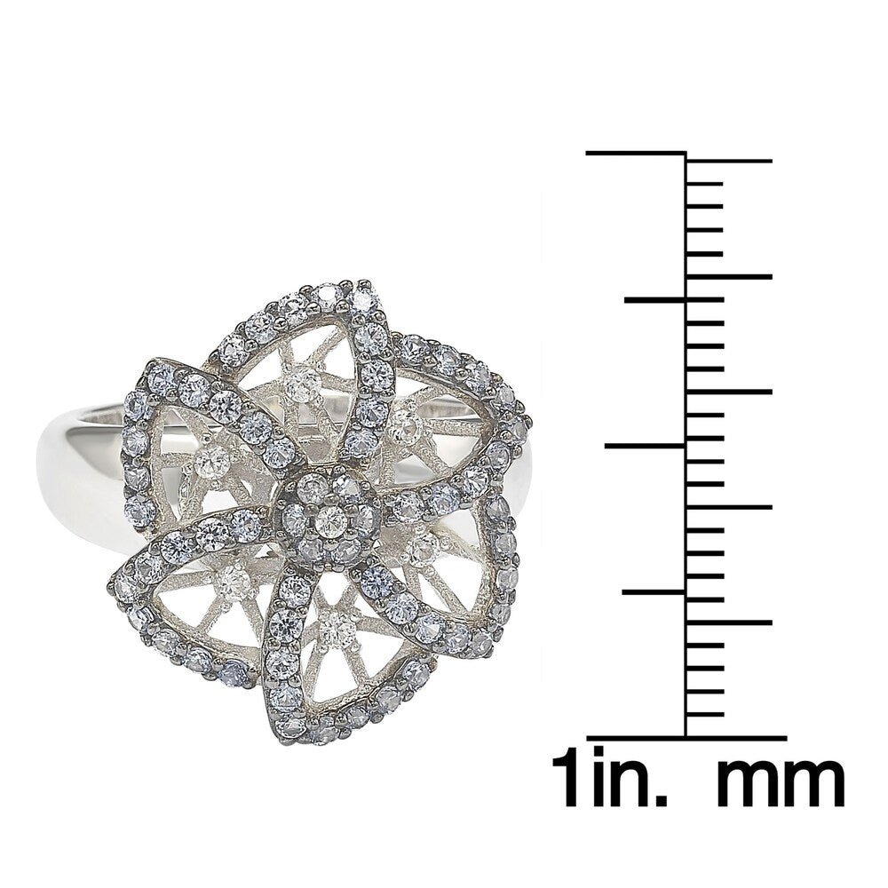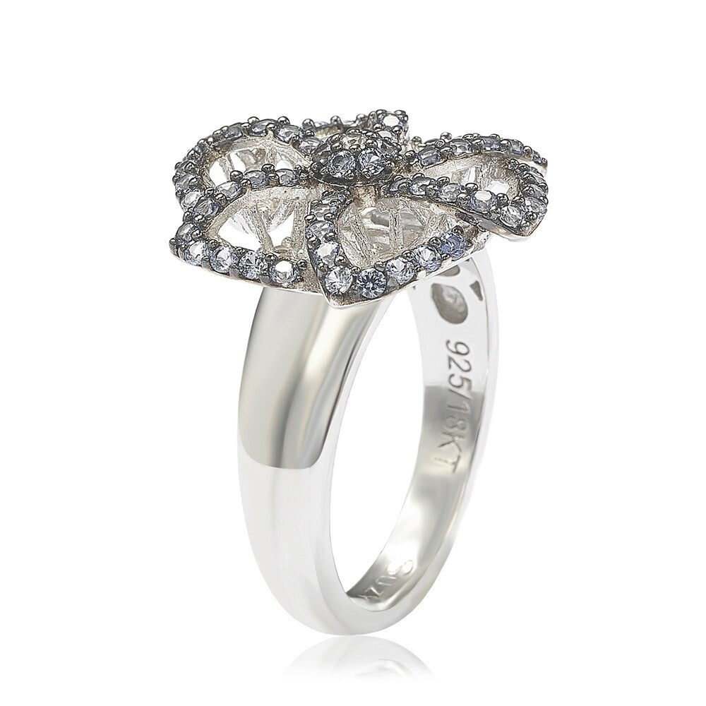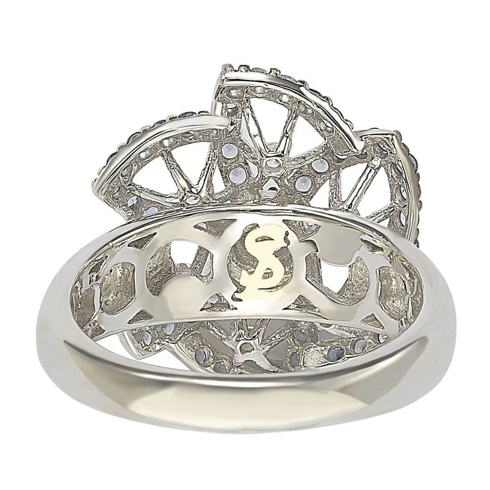 Suzy Levian Sterling Silver Sapphire & Diamond Abstract Flower Ring