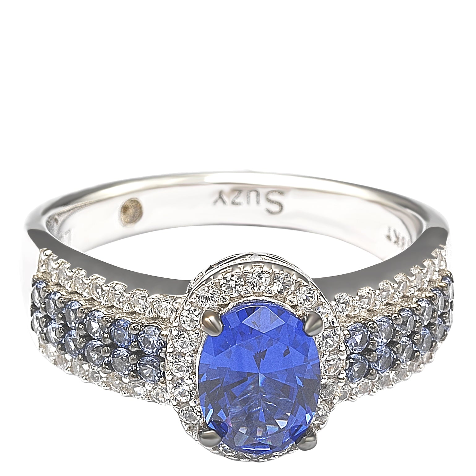 Suzy Levian Sterling Silver Oval-Cut Sapphire and Diamond Accent Anniversary Ring