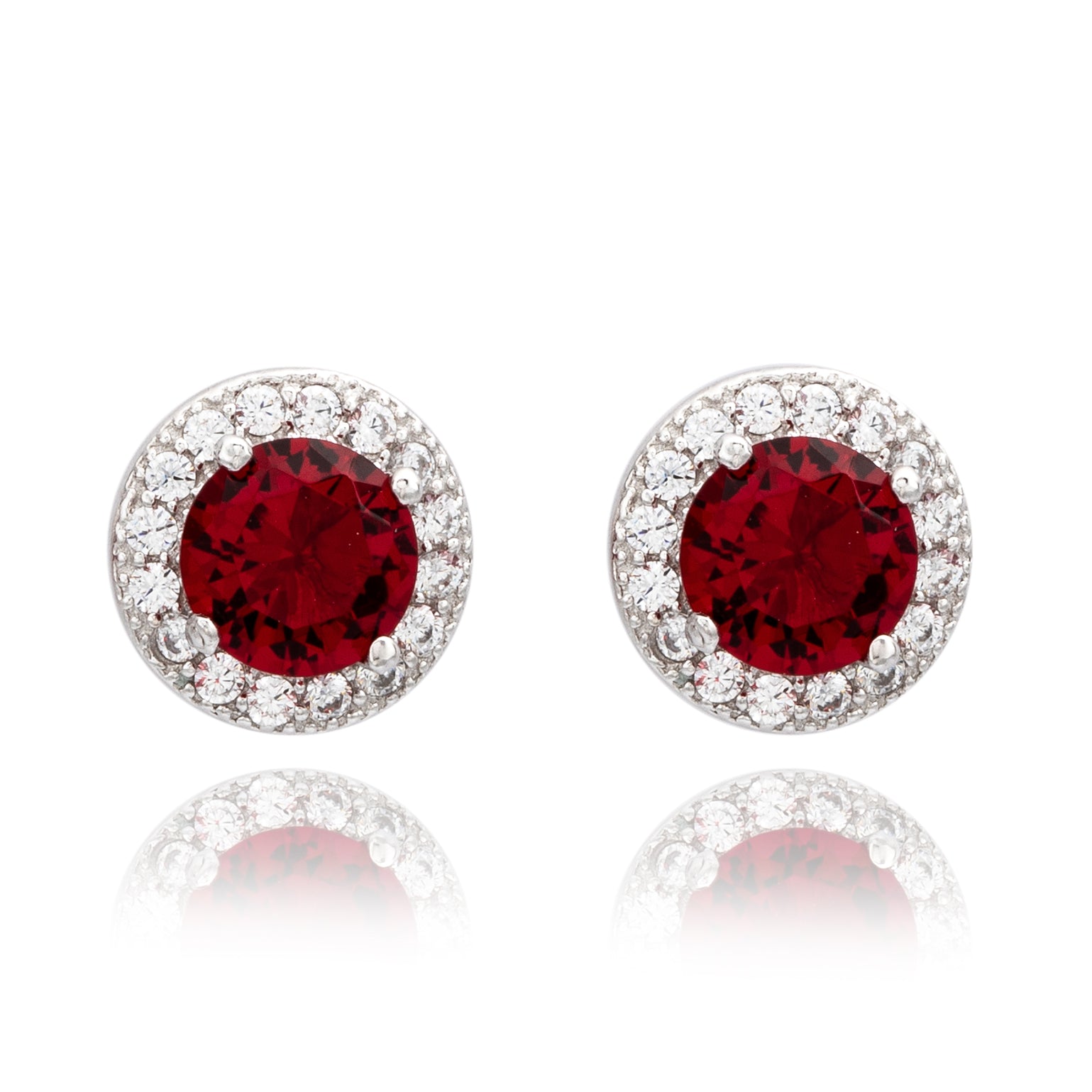 Suzy Levian White Sterling Silver Round Cut Red Cubic Zirconia Halo Studs