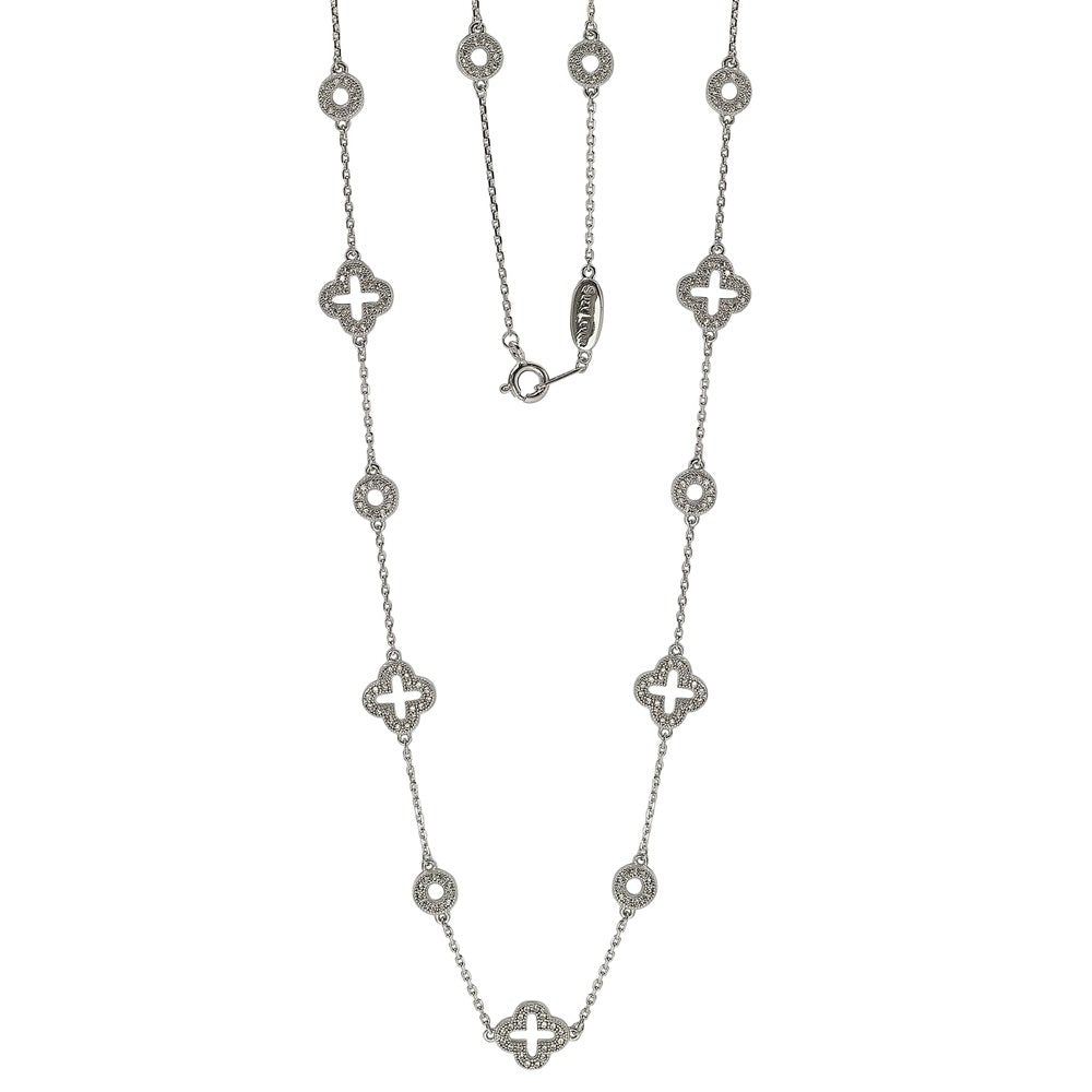 Suzy Levian Sterling Silver White Cubic Zirconia Clover & Circle Station Necklace