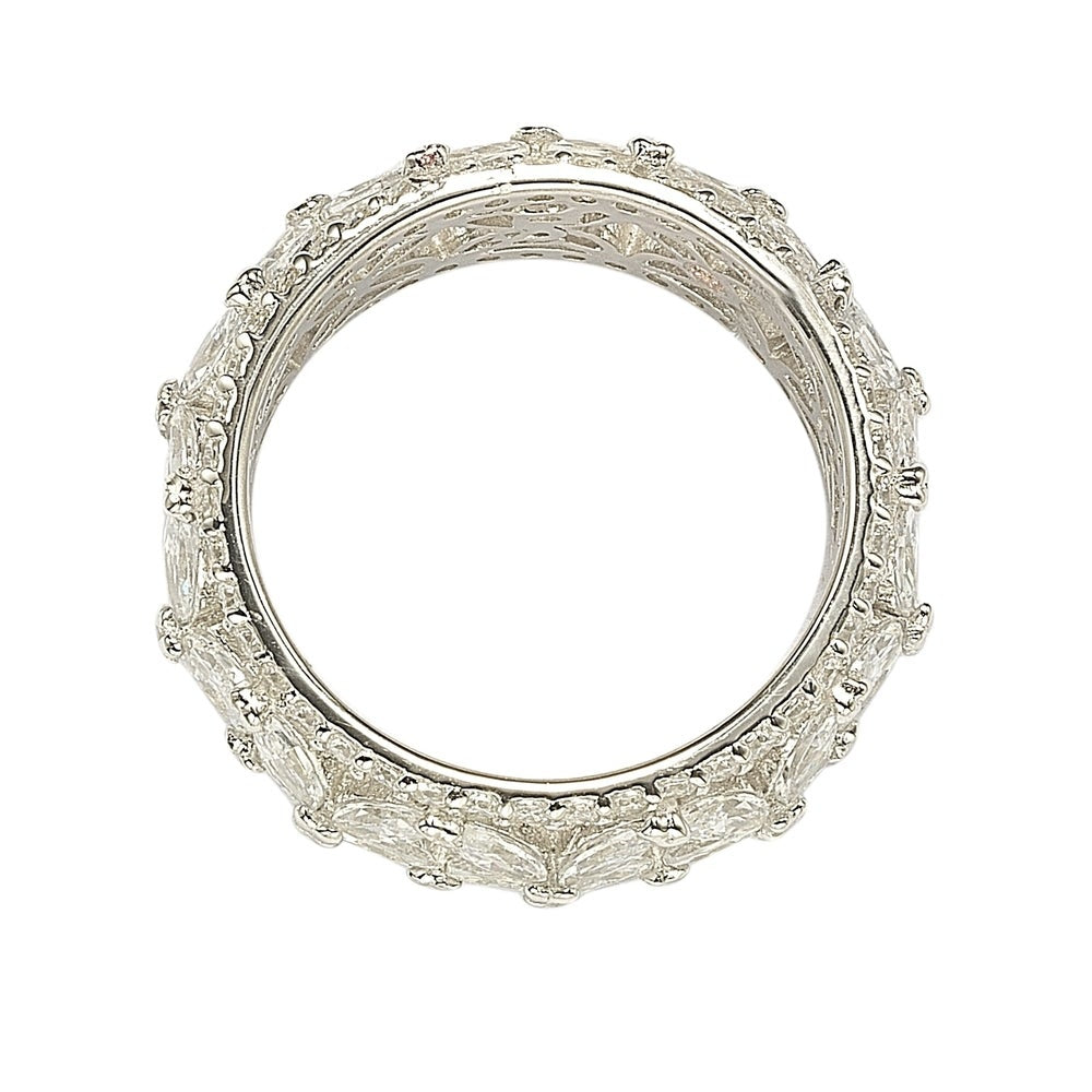 Suzy Levian Sterling Silver Cubic Zirconia Floral Eternity Band