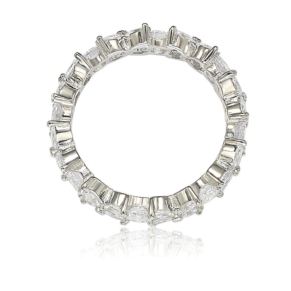 Suzy Levian Sterling Silver Cubic Zirconia Floral Eternity Band