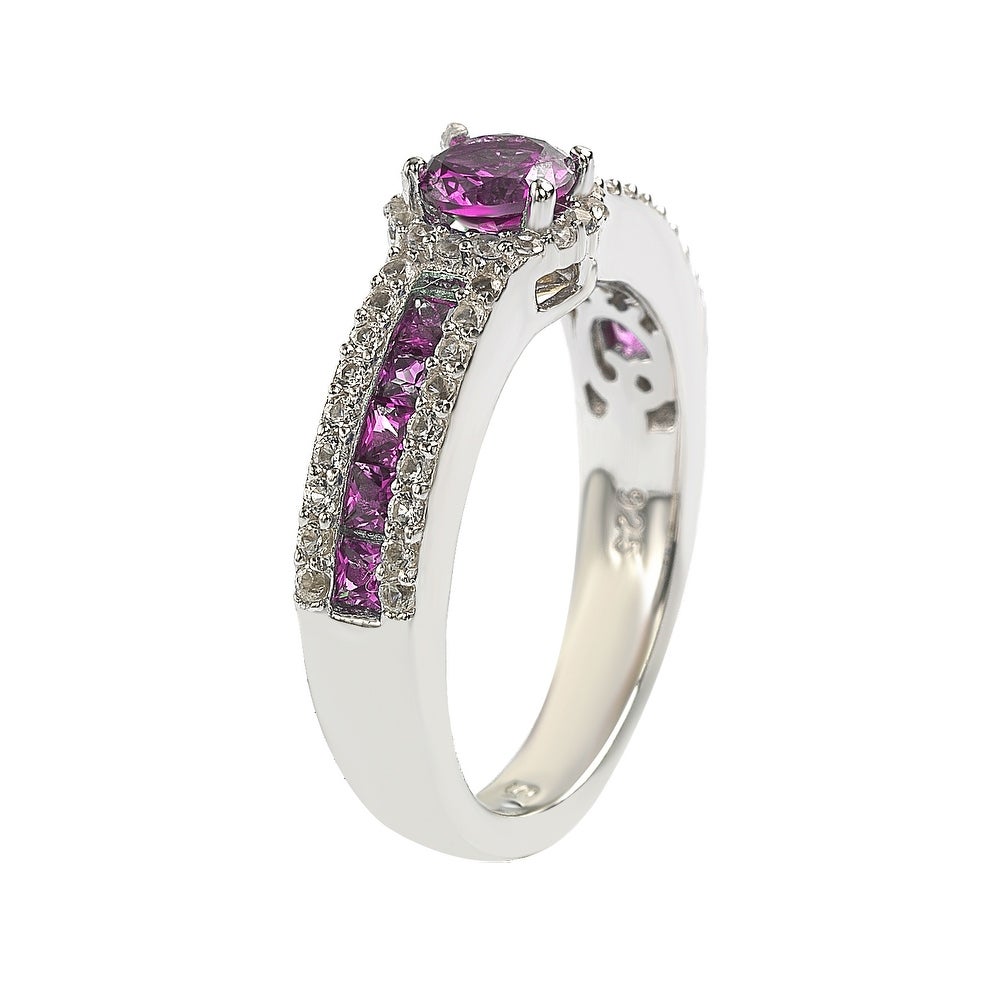 Suzy Levian Sterling Silver Pink Sapphire & Diamond Accent Princess-Cut Bridal Ring