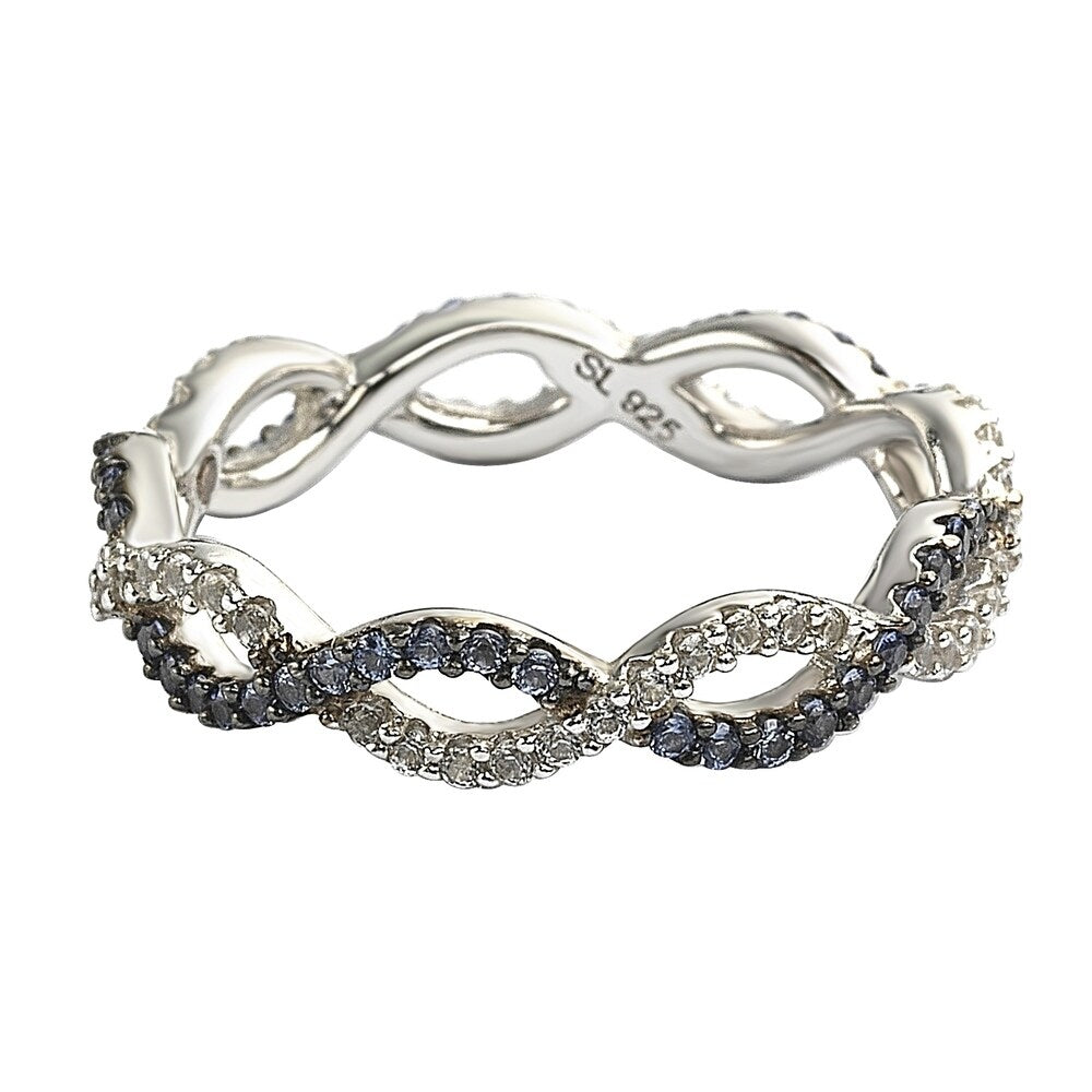 Suzy Levian Sterling Silver Sapphire & Diamond Accent Crossover Band