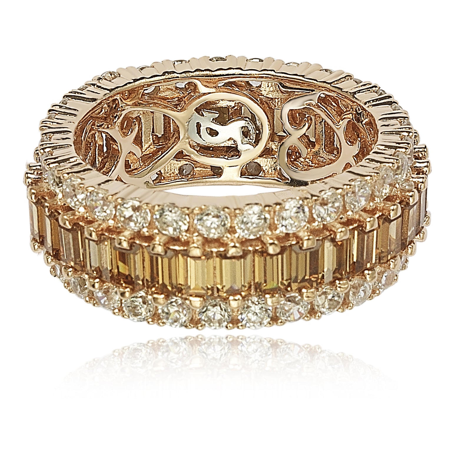 Suzy Levian Rosed Sterling Silver Emerald Cut Brown Cubic Zirconia 3 Row Eternity Band
