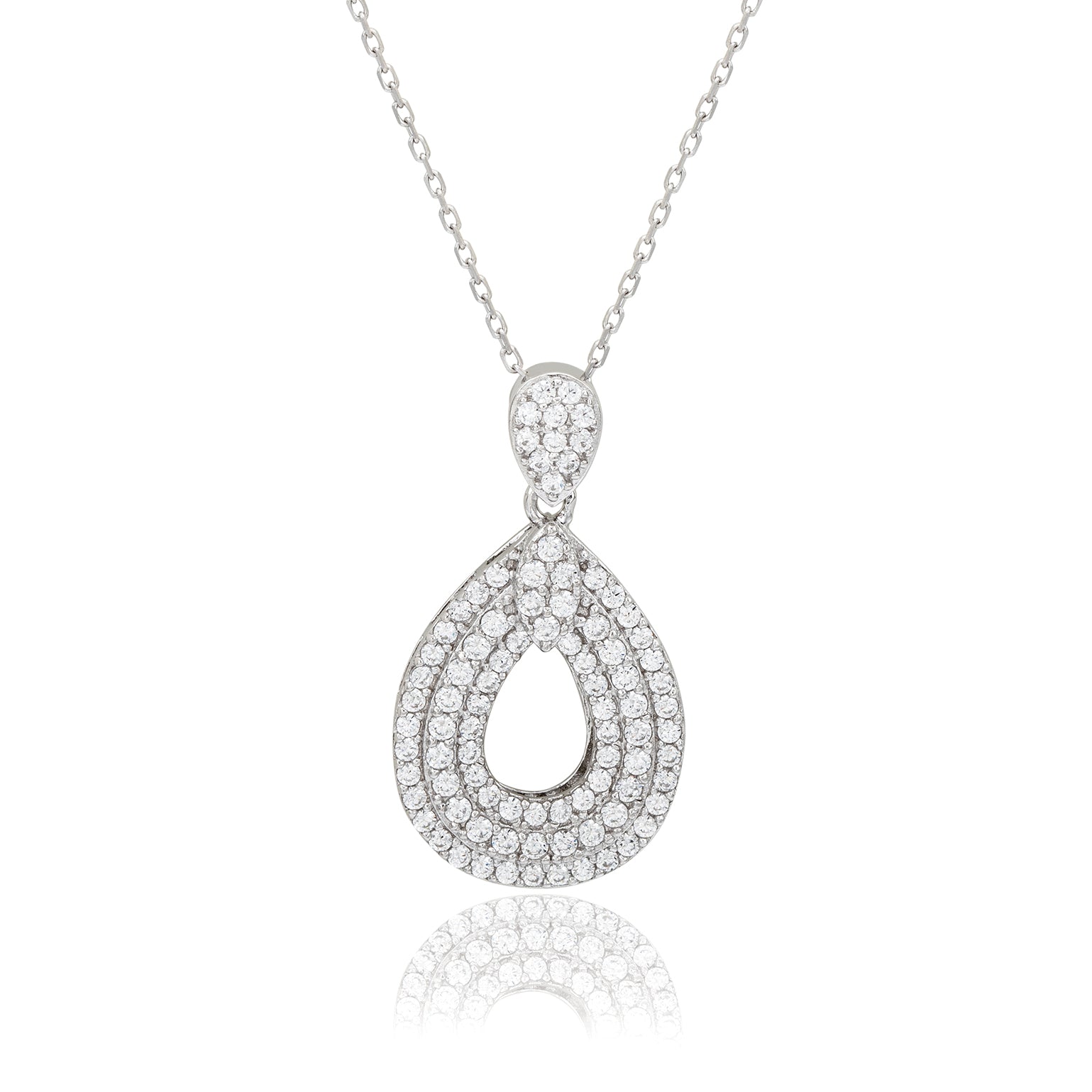 Suzy Levian Sterling Silver White Cubic Zirconia Teardrop Pendant