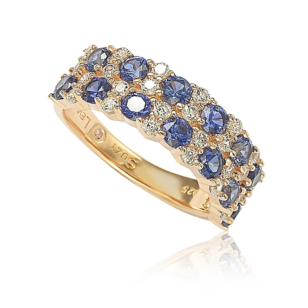 Suzy Levian Rose Sterling Silver Natural Blue Sapphire and Diamond Accent Double Row Band