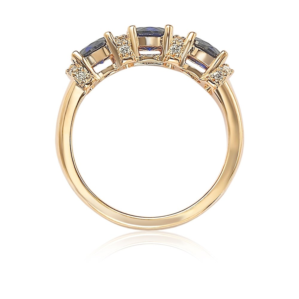 Stunning, timeless and classy. This ring is filled with rich, high quality gemstones, featuring oval-cut blue sapphires, prong-set with alternating smaller round created white sapphires, hand set in rose plated 925 sterling silver. Every single ring is hand made, making it a unique masterpiece. Surprise someone special in your life with this luxurious anniversary ring. Or even better, this could be the perfect birthday gift. Treat someone to a ring that's not only strikingly gorgeous but reminds your special someone that your love will lasts for all eternity. This ring is designed by Suzy Levian with a message. By creating jewelry that is beautiful inside and out, Suzy Levian's message is revealed through a hidden brown fancy diamond (.02 ct) set inside the band of this ring to empower women to discover their inner strength, power and beauty. This ring has a closed under-gallery for comfort fit with a two-tone finish, highlighting Suzy Levian's yellow gold plated logo. 'Together we can inspire the world to appreciate the diamond in ourselves.' - Suzy Levian