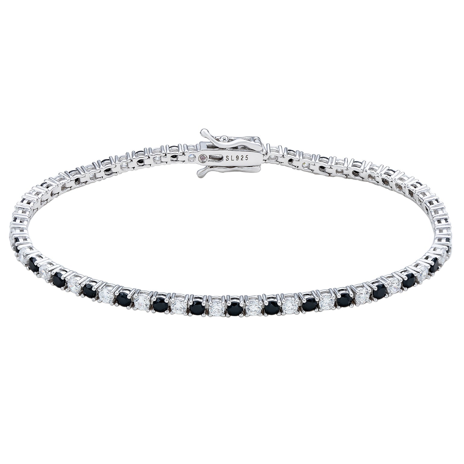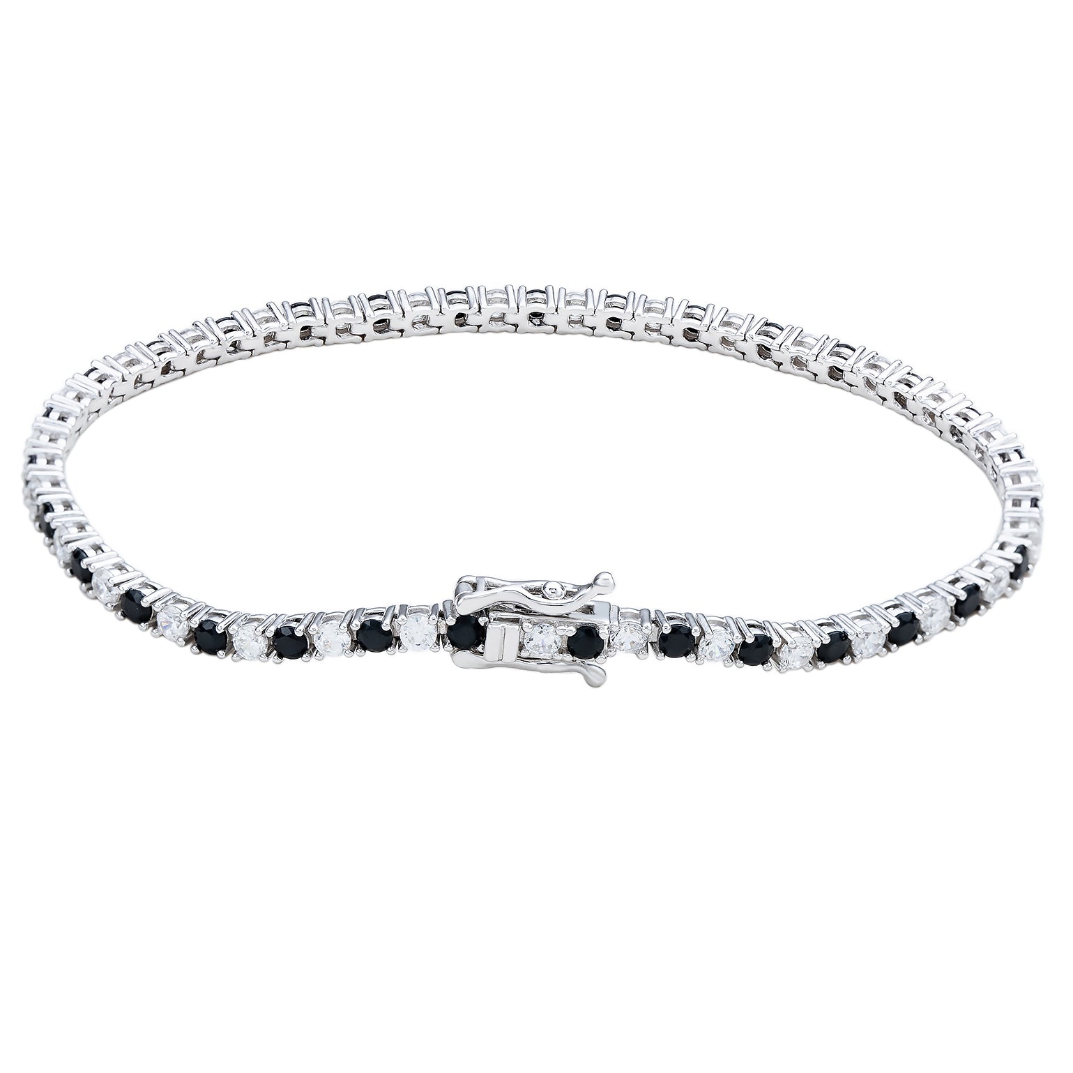 Suzy Levian Black White Cubic Zirconia Sterling Silver 7 inch Tennis Bracelet