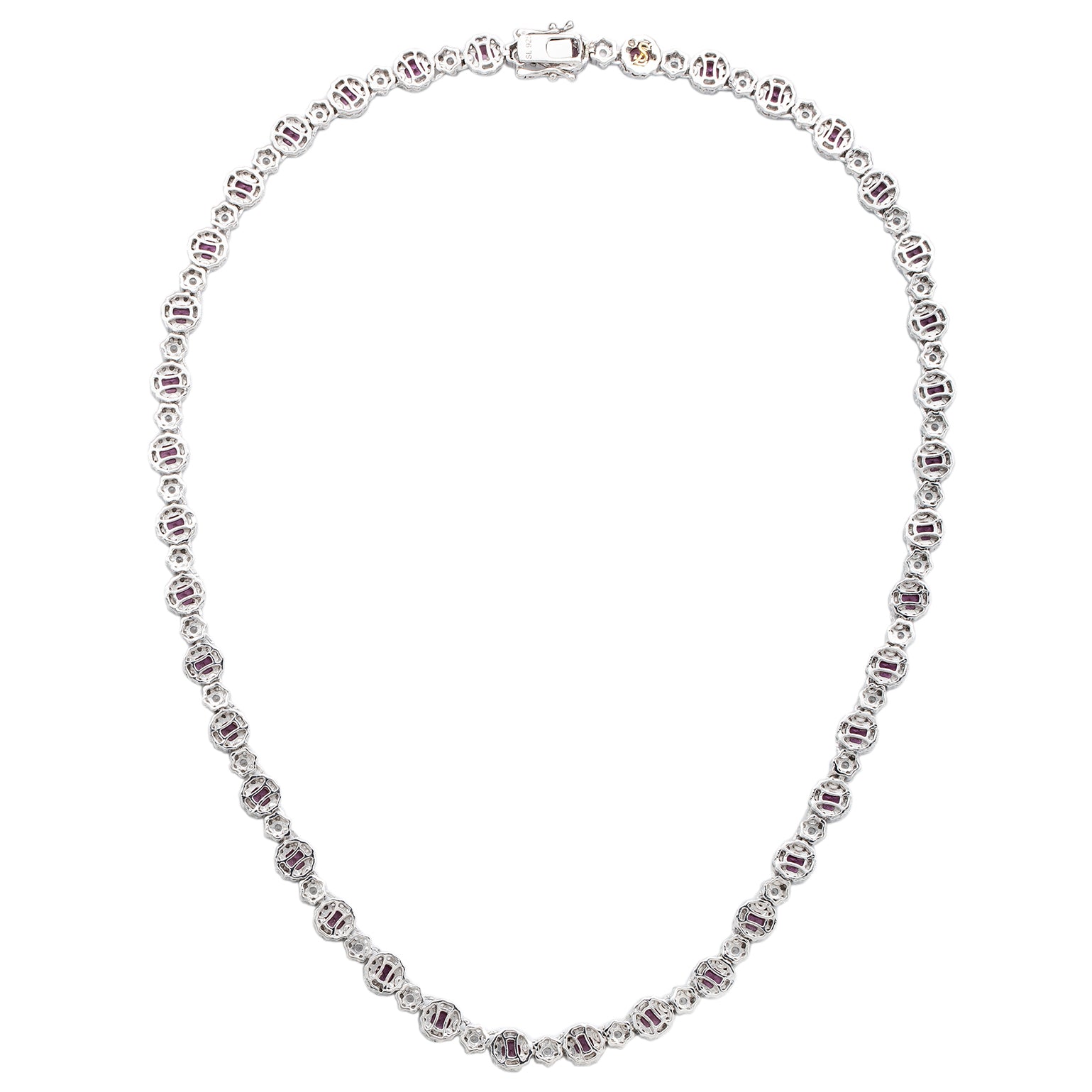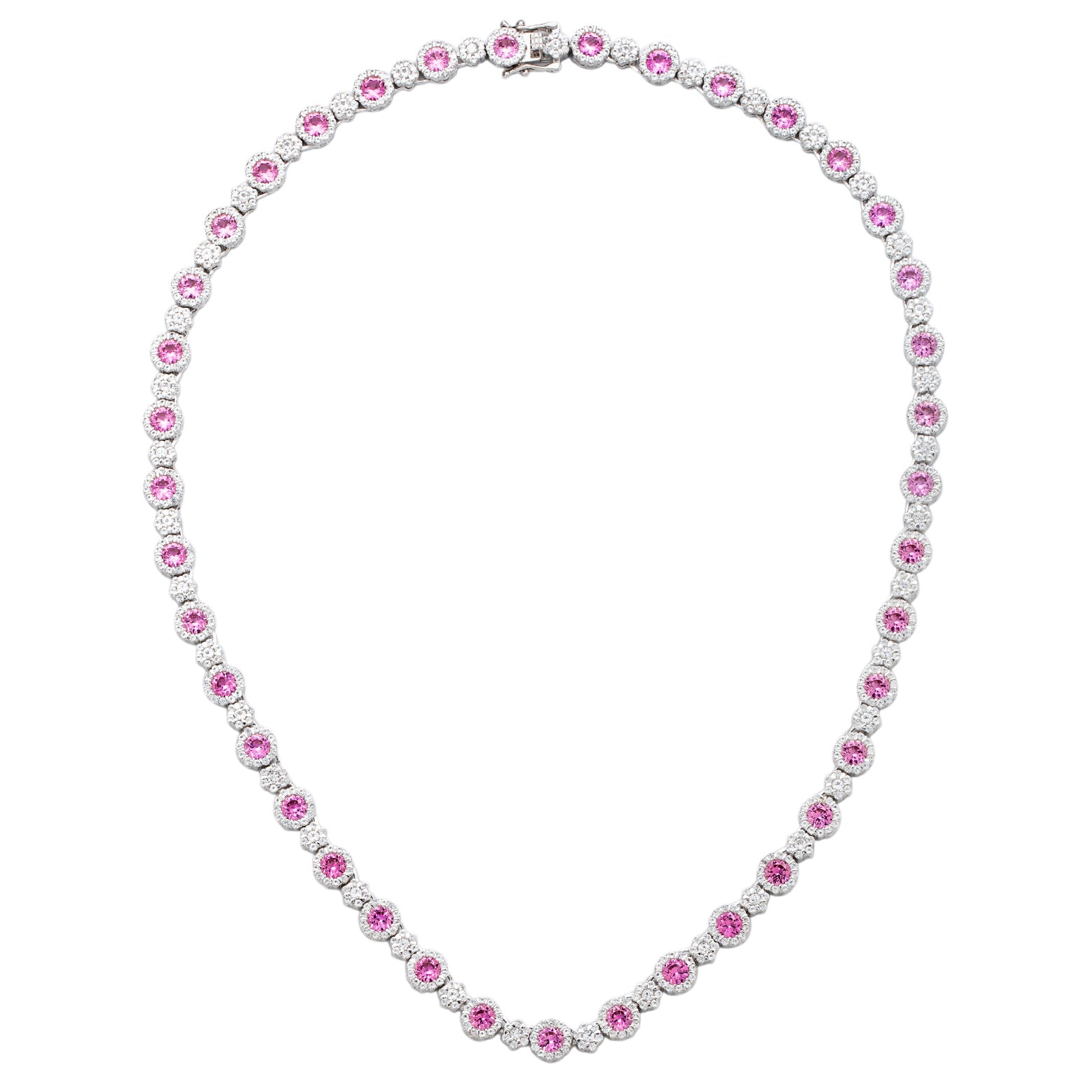 Suzy Levian Sterling Silver Pink Sapphire and Diamond Accent Tennis Necklace