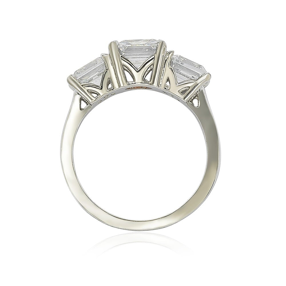 This gorgeous Suzy Levian sterling silver engagement ring features a 3-stone ascher cut white cubic zirconia design in a gorgeous prong setting. It's the perfect engagement ring to guarantee the YES! This ring is designed by Suzy Levian with a special message to share. By creating jewelry that is beautiful inside and out, Suzy Levian's message is revealed through a hidden stone set inside the band of this ring meant to empower women to discover their inner strength, power and beauty that is hidden within themselves.