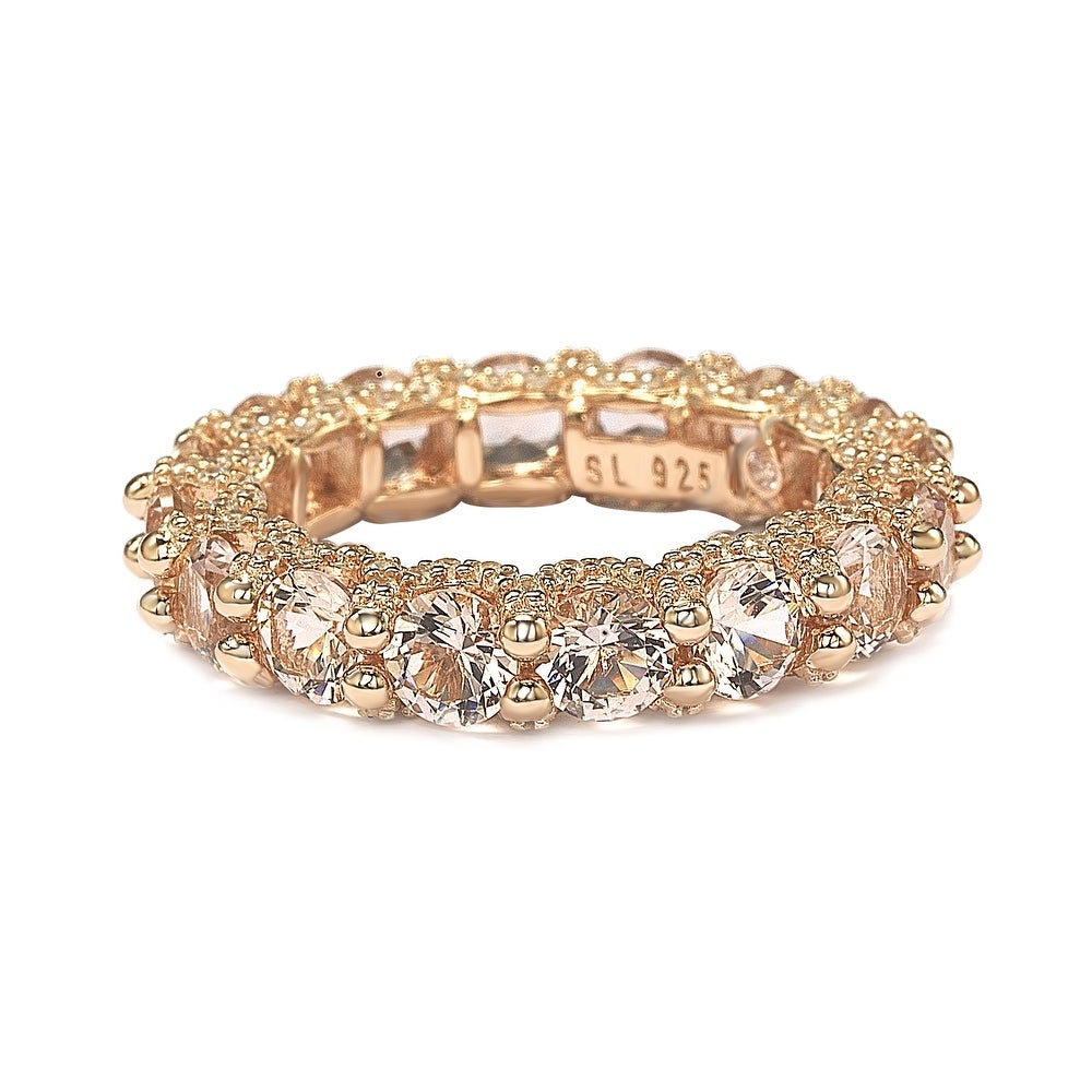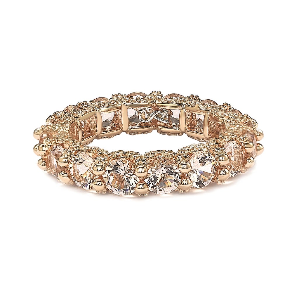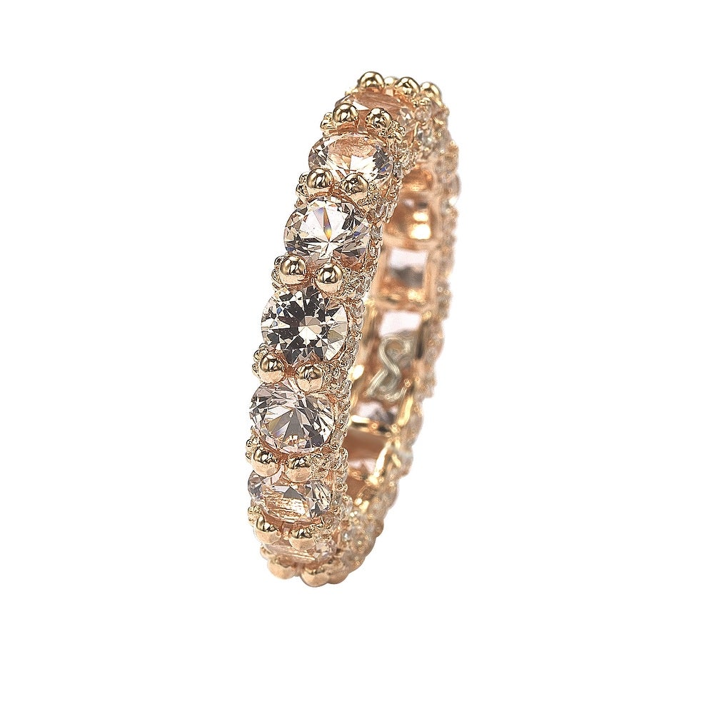 Stunning, timeless and classy. This brilliant ring is filled with rich, high quality pink round cut cubic zirconia gemstones, hand set in the trendiest, yet classiest U shape setting in high polished 925 rose plated sterling silver. Each side of the eternity band has micro pave white cubic zirconia stones set on the profile of the ring to enhance the beauty of the eternity band. Every single ring is man made, making it a unique masterpiece. Surprise someone special in your life with this luxurious anniversary band. Light-weighted and extremely shiny, every time your loved one will look at it, it will remind them that your love will last for all eternity! Suzy Levian guarantees the use of only high quality and top of the line materials, delivering for you and your loved one only the best. This ring is designed by Suzy Levian with a message. By creating jewelry that is beautiful inside and out, Suzy Levian's message is revealed through a hidden secret stone set in the shank of this ring to empower women to discover their inner strength, power and beauty. This ring has a closed under-gallery for comfort fit. 'Together we can inspire the world to appreciate the diamond in ourselves.' - S.L.