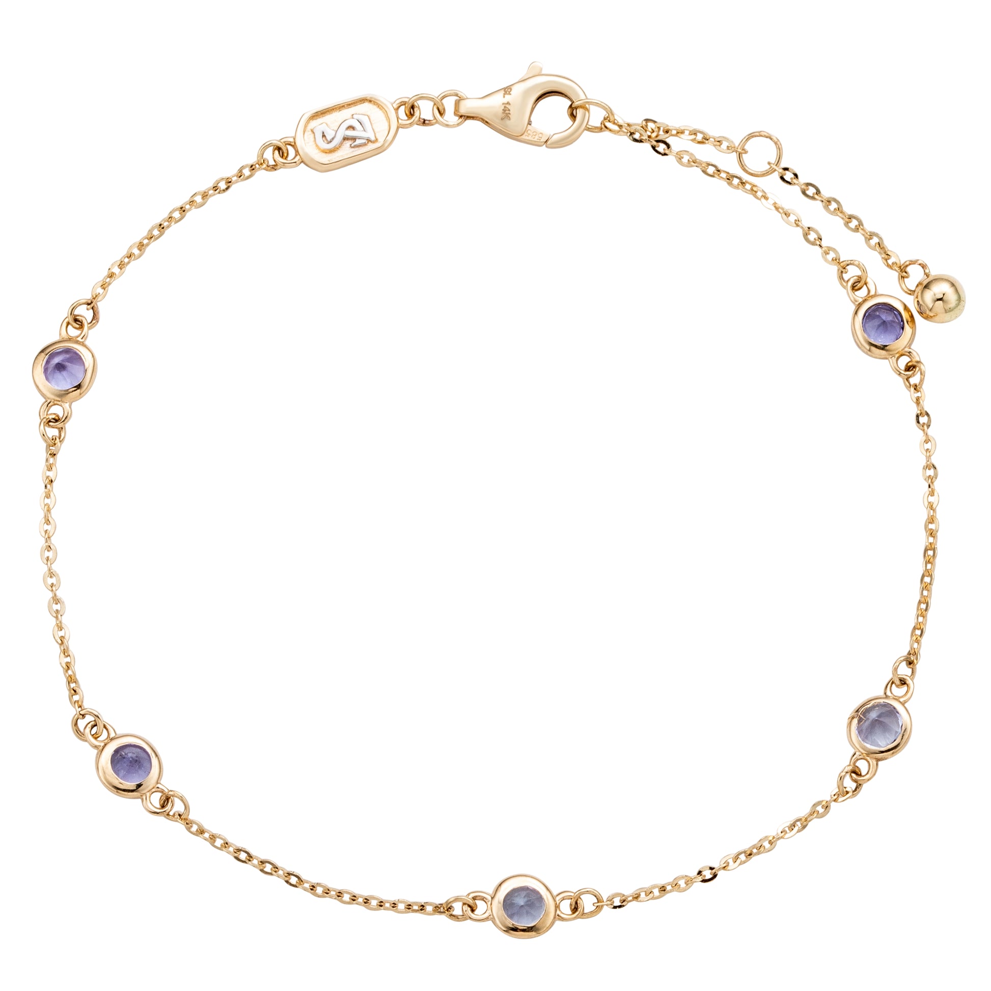Suzy Levian 14K Yellow Gold .55 Cttw Round Cut Tanzanite Station Bracelet