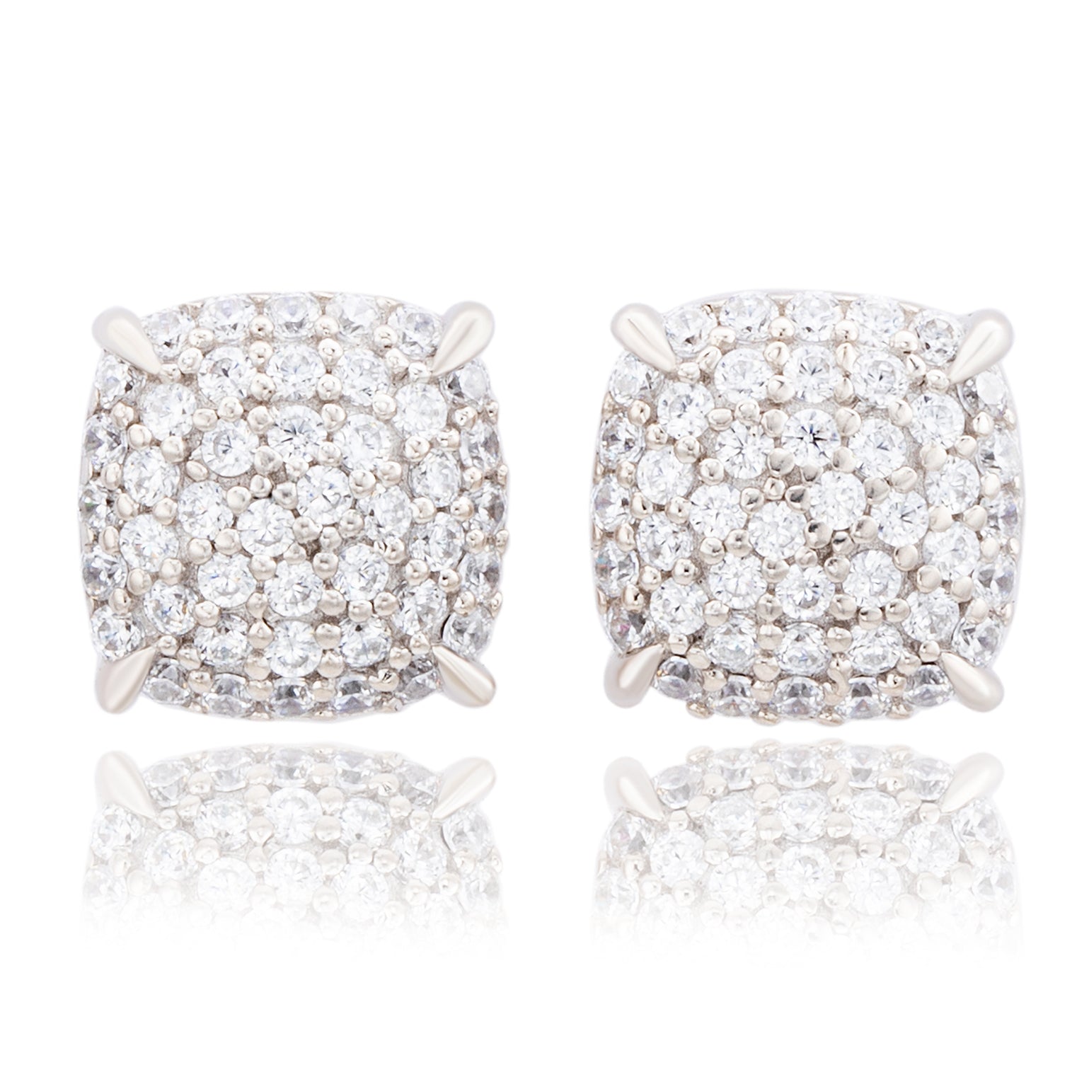 Suzy Levian Sterling Silver Pave Cubic Zirconia Square Cushion Stud Earrings