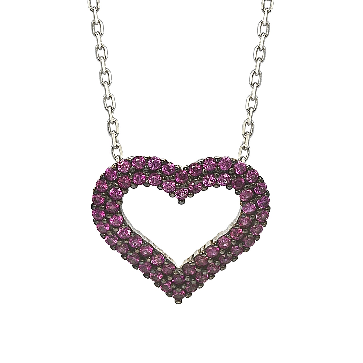 Enthusiasm for style created from the heart. Nothing spells out love better than a gorgeous heart pendant. This beautiful Suzy Levian pendant features two rows of pave pink cubic zirconia, hand set in black rhodium plated sterling silver. The pendant is hung on an 18-inch cable chain that secures with a spring ring clasp. It's the perfect gift for anyone with an upcoming anniversary, birthday, graduation or just a simple "I love you" gift. Every girl wants to feel loved and there is no better way to say than to give it.