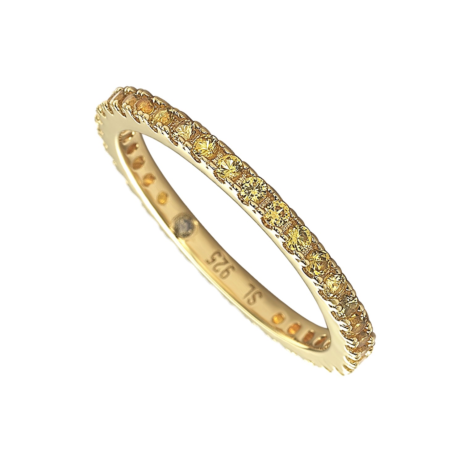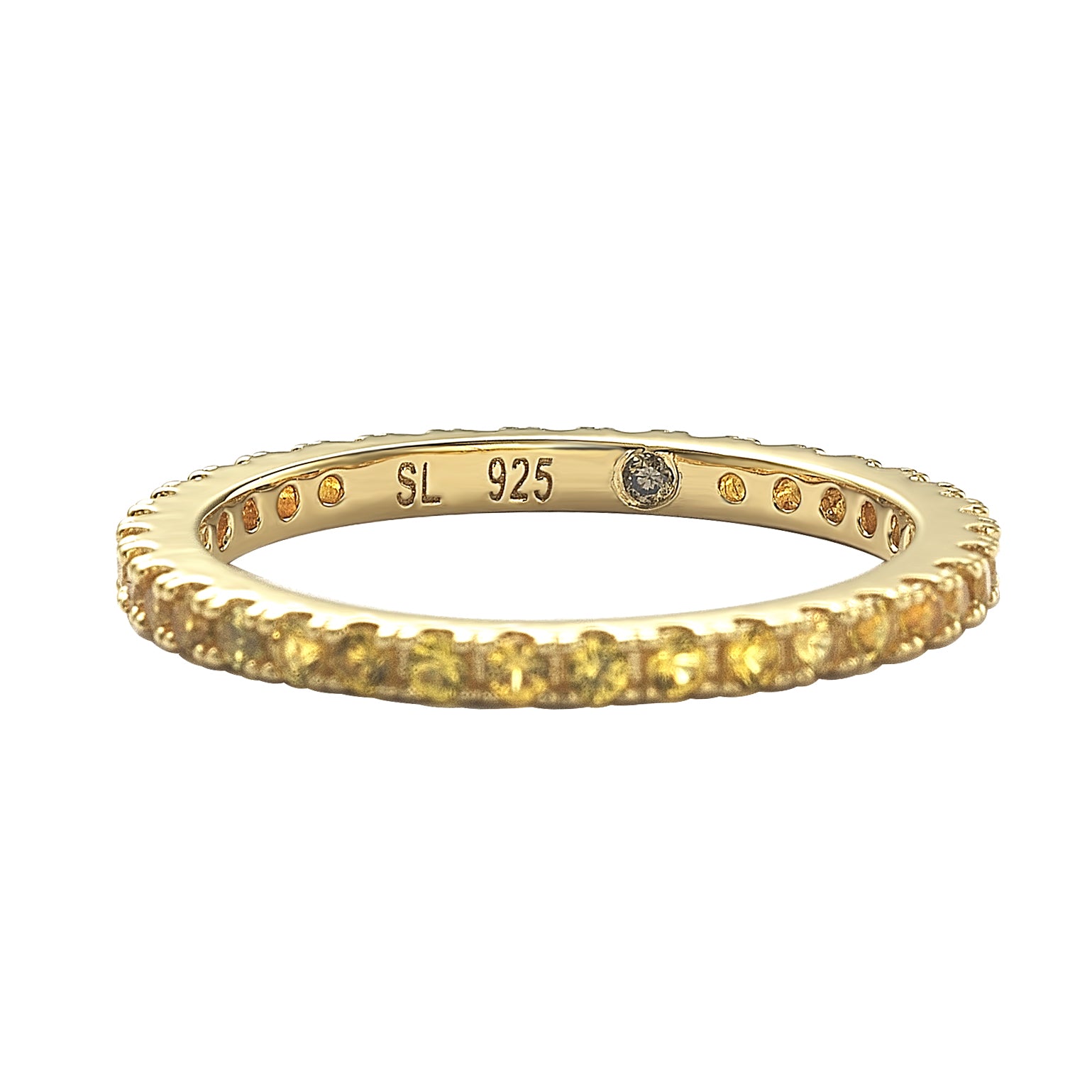 Suzy Levian Yellow Gold Sterling Silver Thin Yellow Sapphire Eternity Band