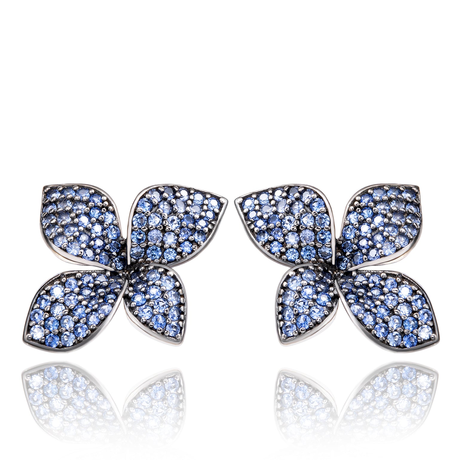 Suzy Levian Black Sterling Silver Blue Sapphire Flower Earrings