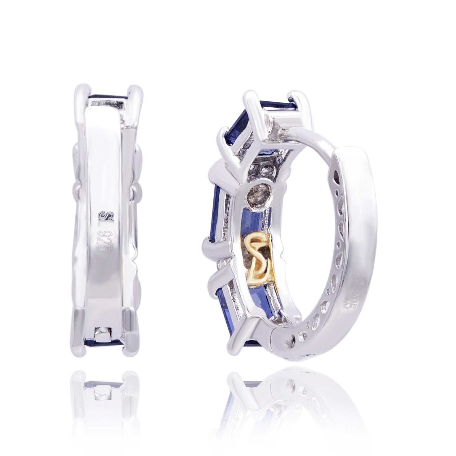 Suzy Levian Sterling Silver Emerald Cut Blue Sapphire and Diamond Accent Petite Hoop Earring