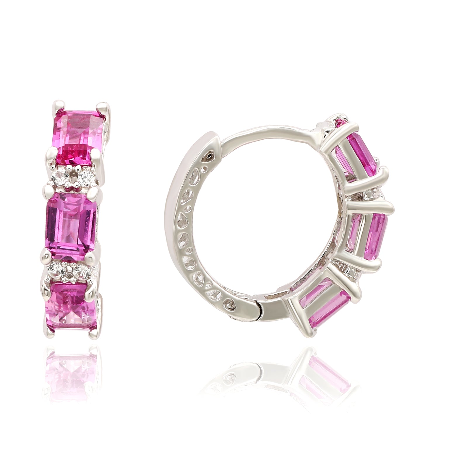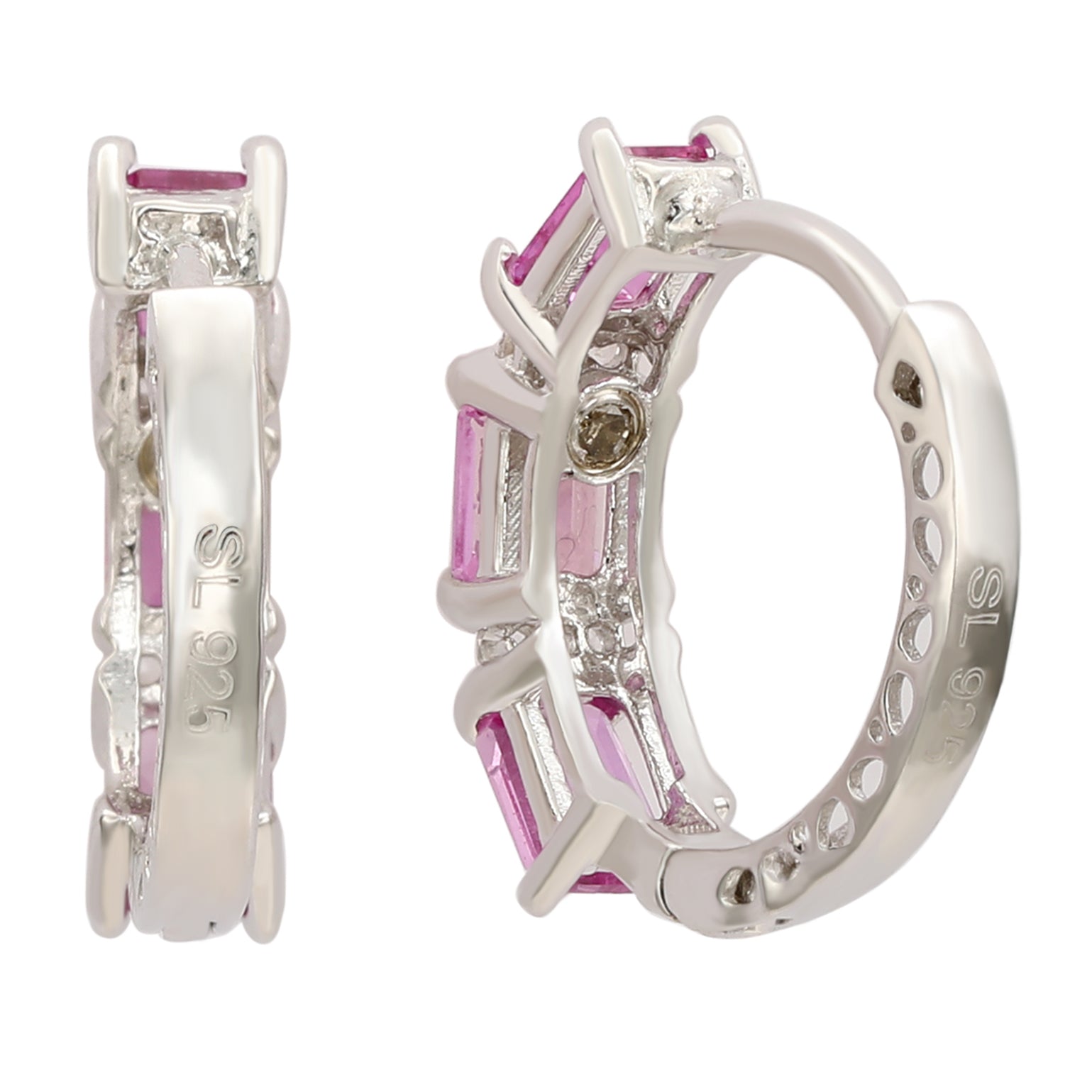 Suzy Levian Sterling Silver Emerald Cut Pink Sapphire and Diamond Accent Petite Hoop Earring