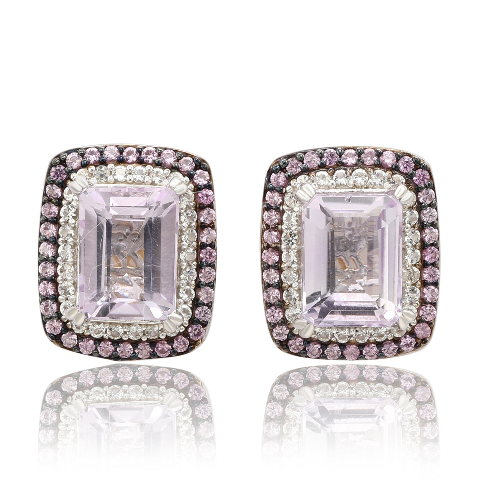 Suzy Levian Sterling Silver Emerald Cut Purple Amethyst And Pink Sapphire Accent Stud Earrings