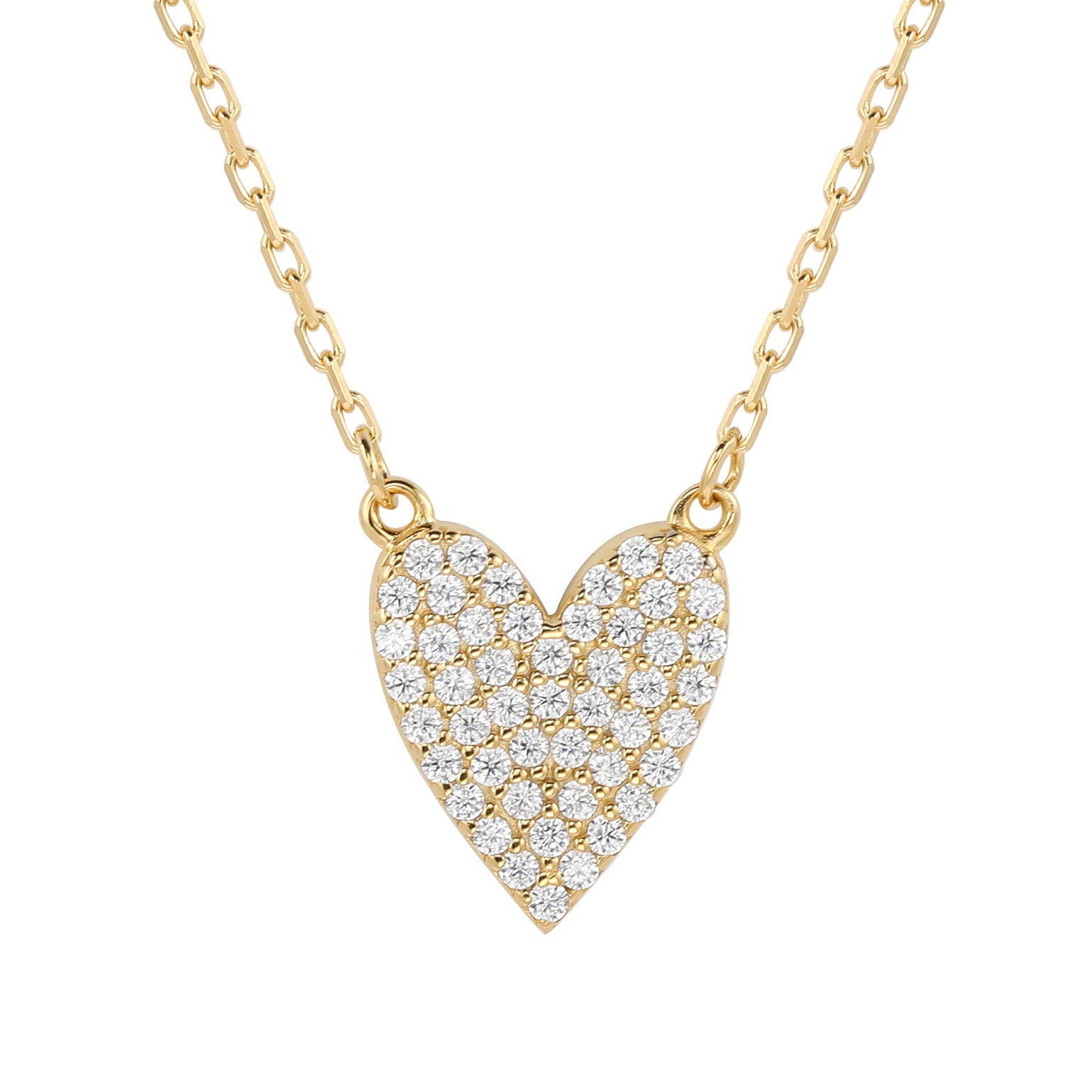 Suzy Levian White Cubic Zirconia Golden Sterling Silver Heart Necklace