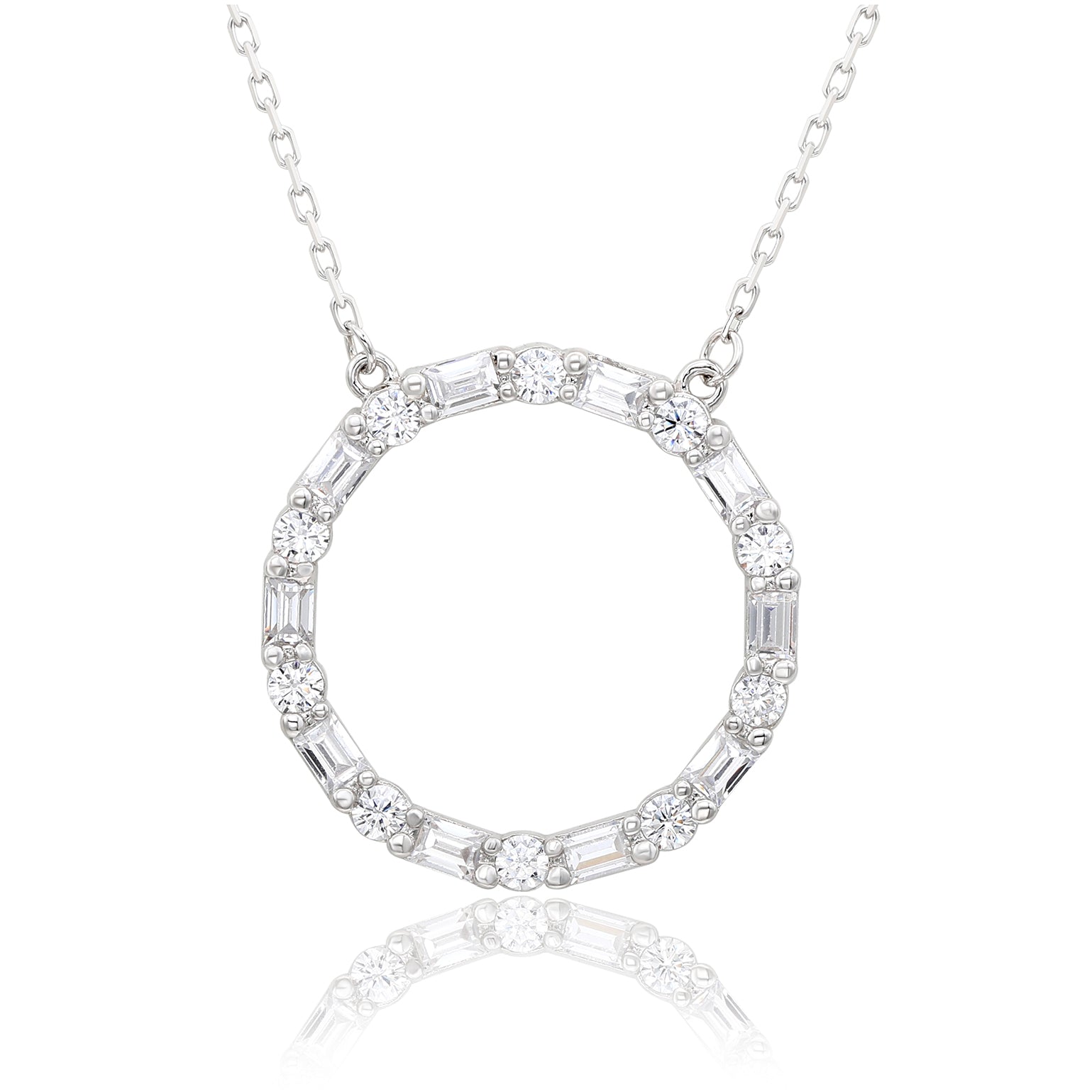 Suzy Levian Sterling Silver White Cubic Zirconia Alternating Circle Eternity Necklace