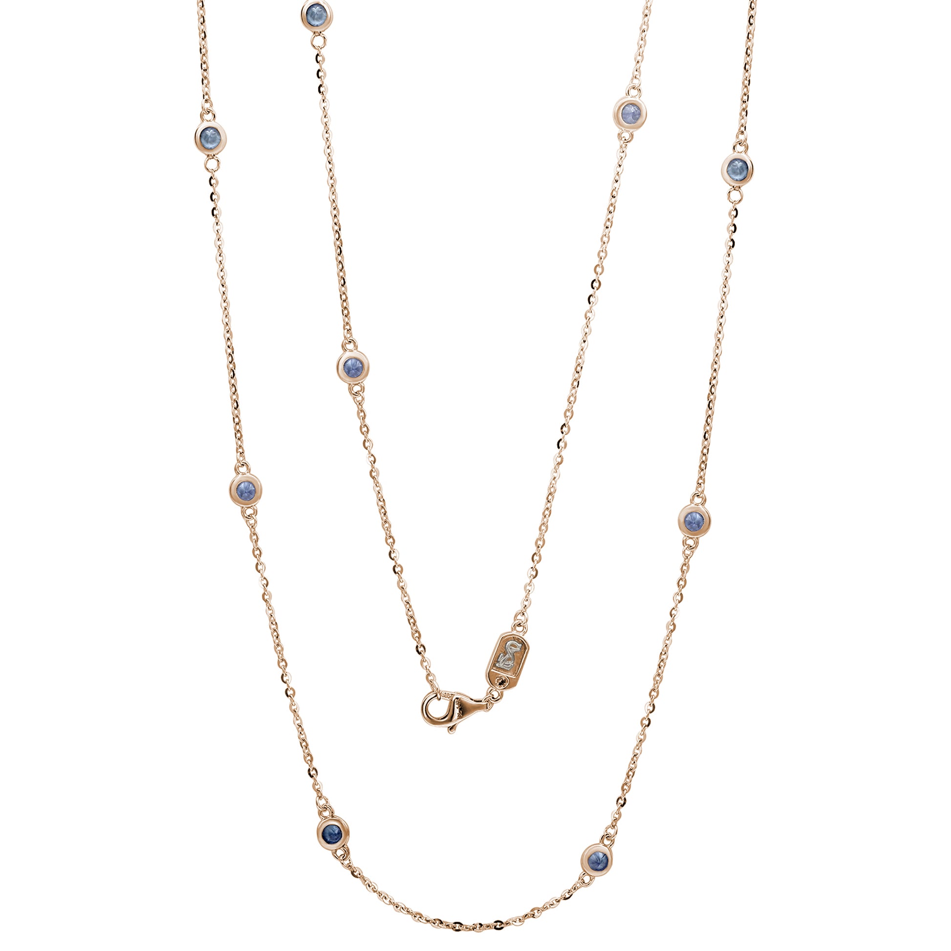Adorn your neck with sparkling shimmers with this beautiful tanzanite station necklace. This necklace can be worn stackable with other necklaces or as a single necklace, making it the perfect necklace for every occasion. This necklace features nine round-cut tanzanite's that is a total of 1.50 cttw, and are bezel set in 14K rose gold. This necklace is 18in length, and showcases sparkle & shine from every angle. This necklace has a lobster closure with a unique plaque embracing Suzy Levian's yellow plating SL logo and Signature Secret Brown Diamond. By creating jewelry that is beautiful inside and out, Suzy Levian's message is revealed through a hidden diamond set inside this plaque, meant to empower women to discover their inner strength, power and beauty that is hidden within themselves. A high polish finish completes the look. This makes a great gift to give for a special loved one on any occasion, such as graduation, birthdays, holiday gift, bat- mitzvahs, and anniversaries!