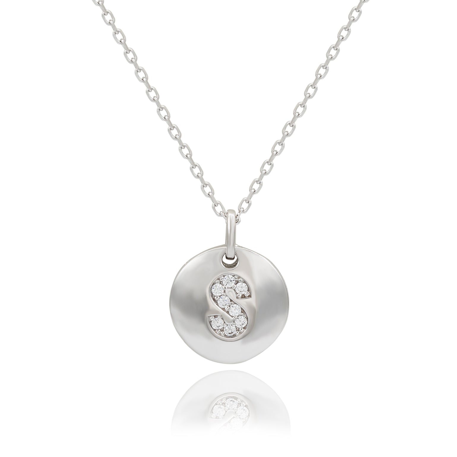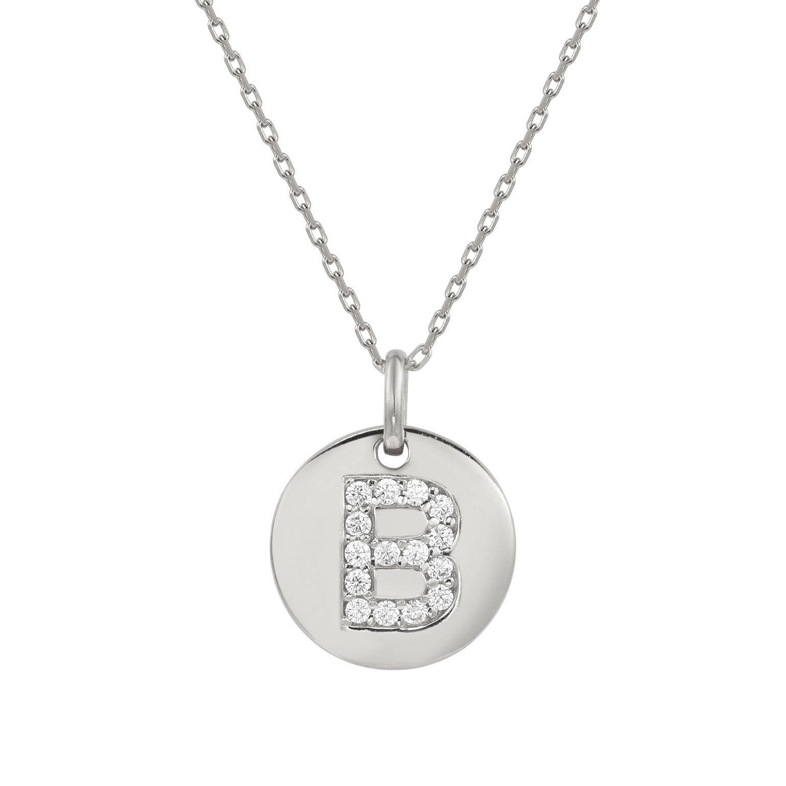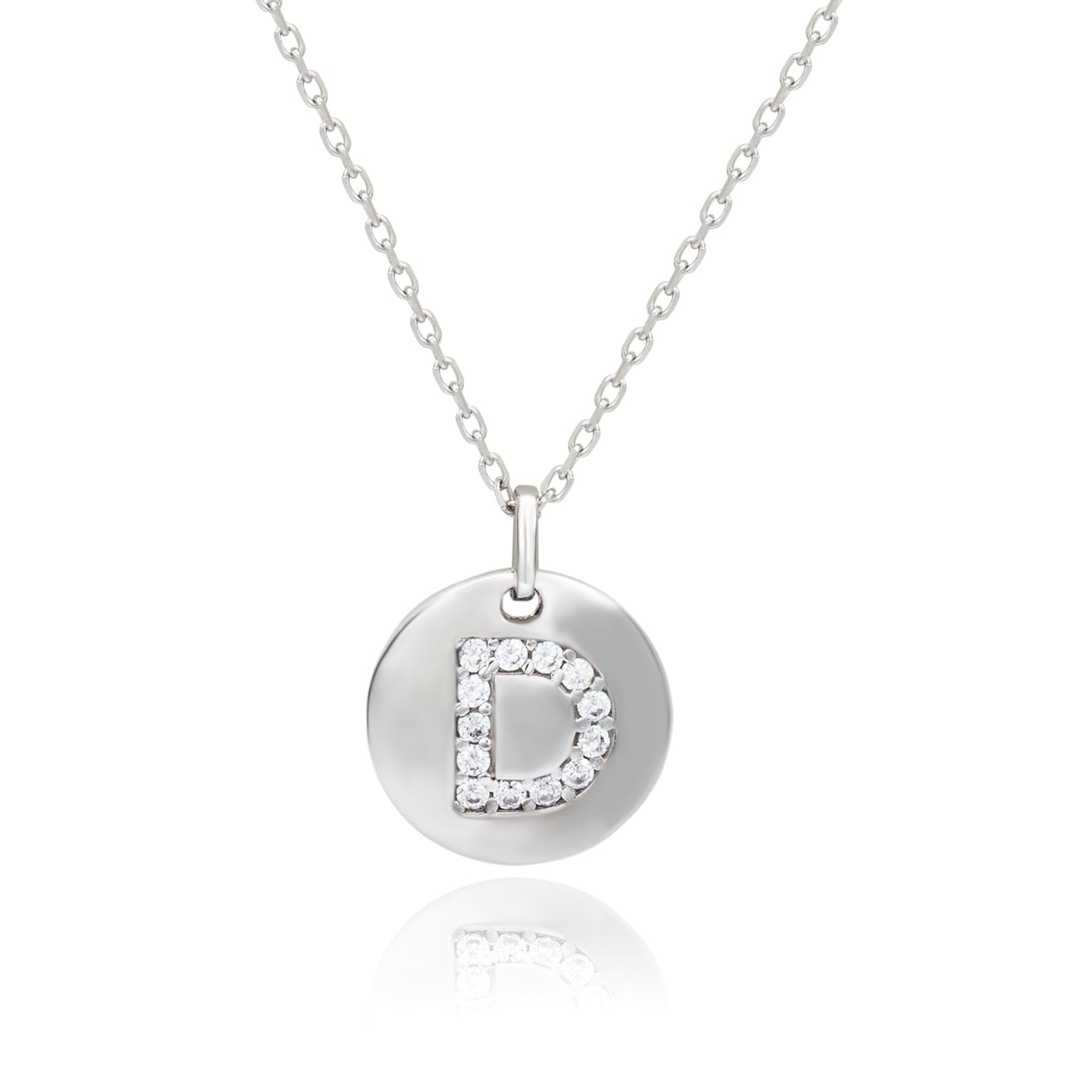 Suzy Levian White Sterling Silver Cubic Zirconia Letter Initial Disc Pendant