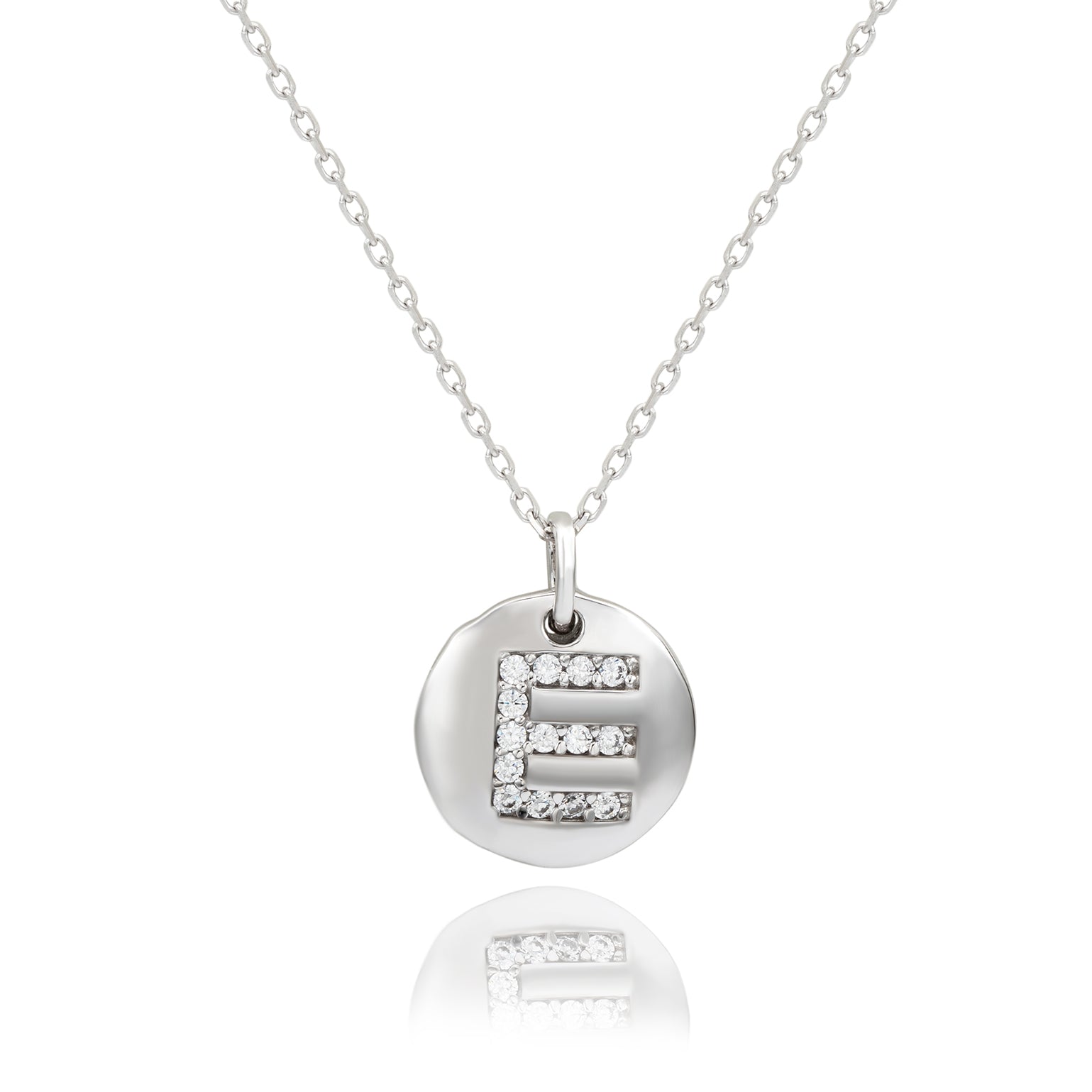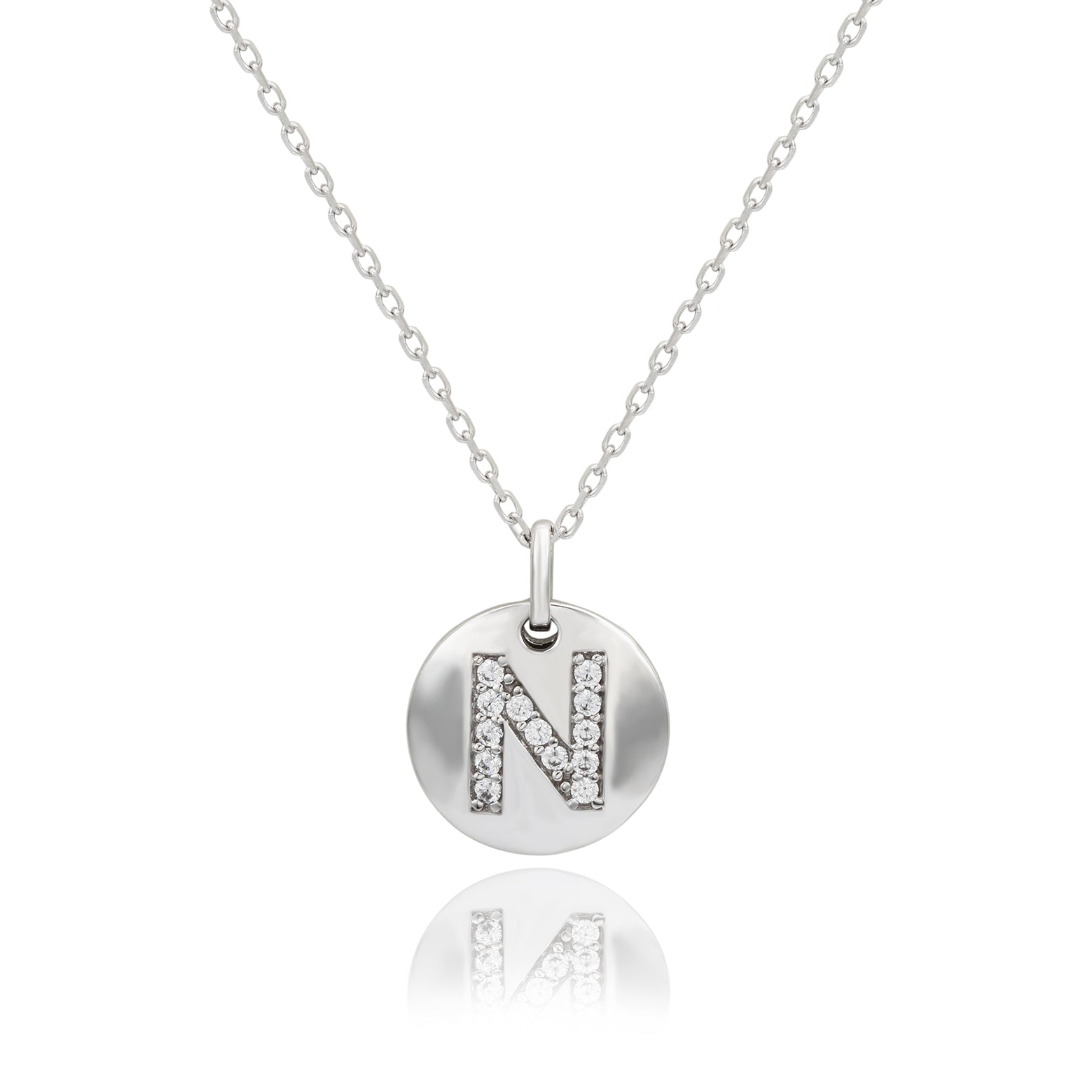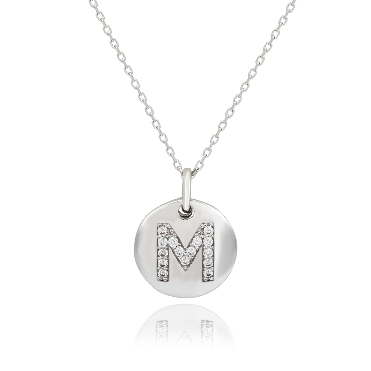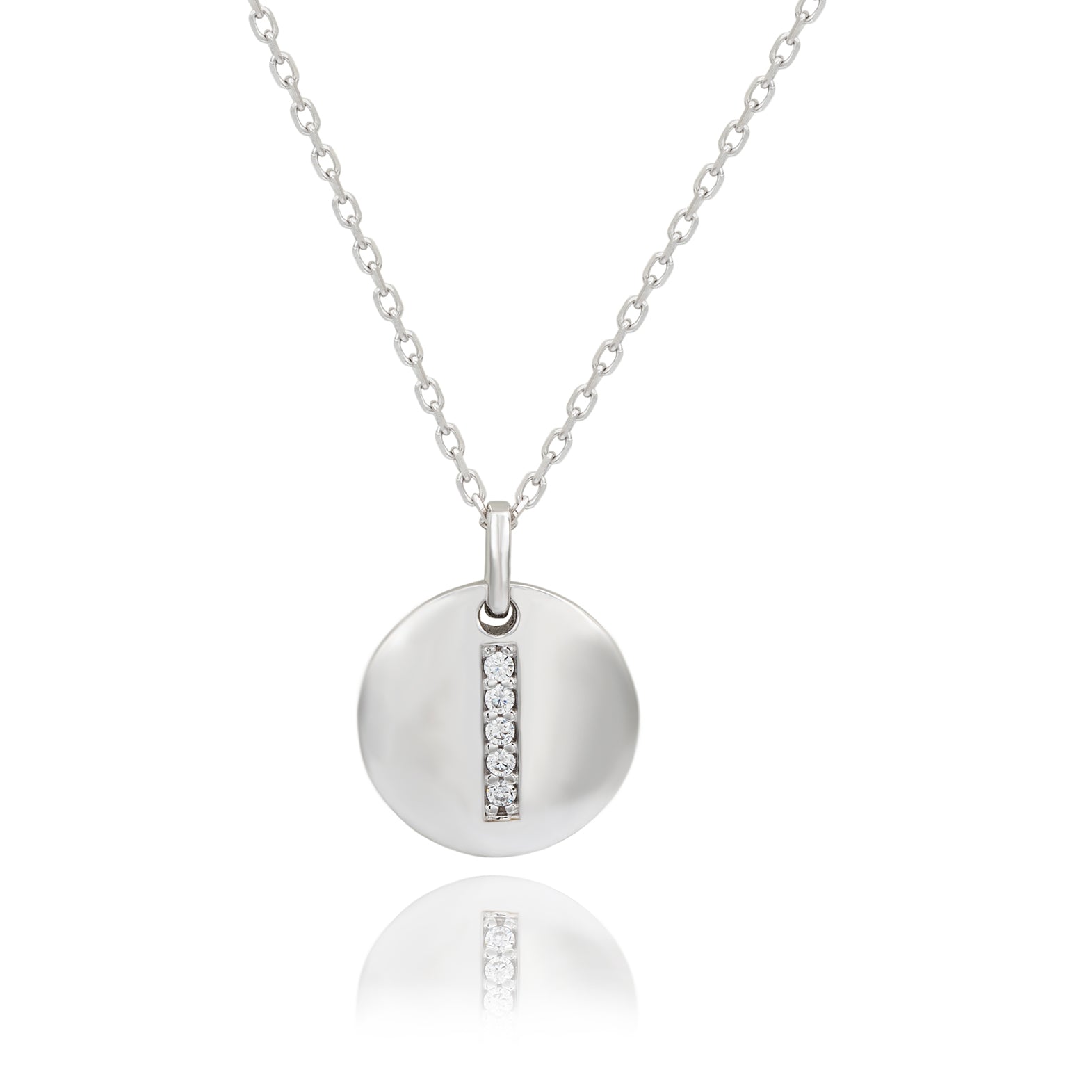Suzy Levian White Sterling Silver Cubic Zirconia Letter Initial Disc Pendant