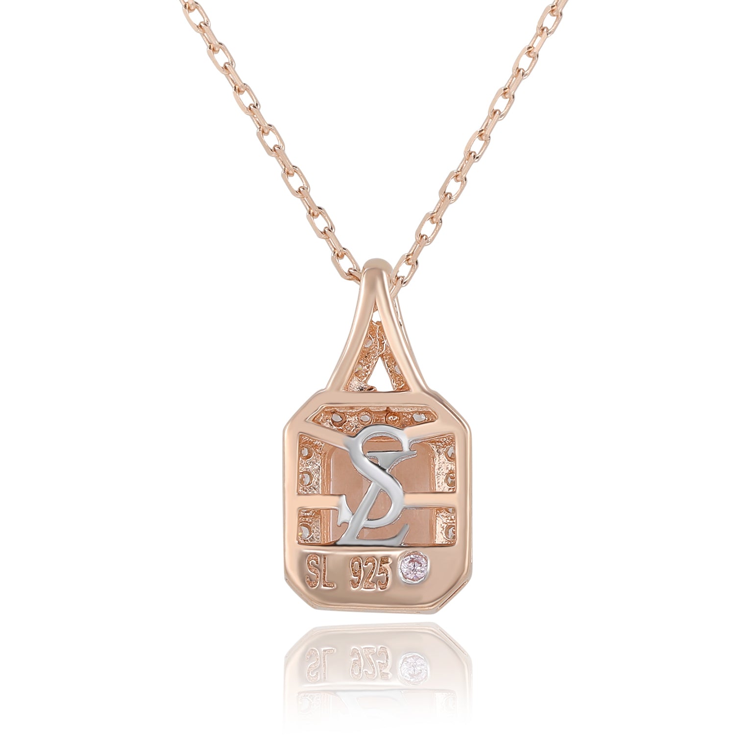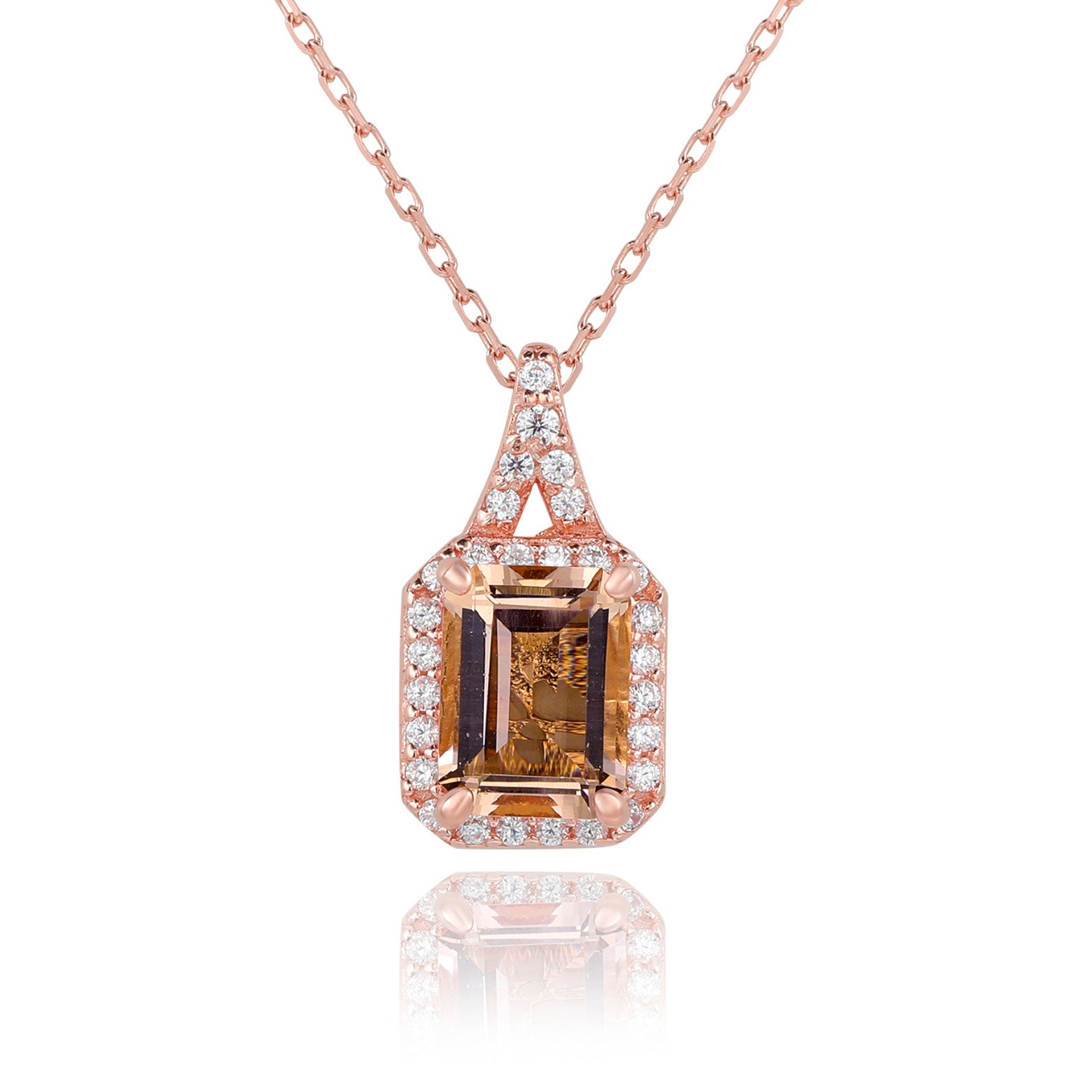 Feel the beautiful mix of stunning colors and cuts coming together to create this magnificent Suzy Levian pendant. This pendant features a emerald-cut brown cubic zirconia center stone accented with a pave-set white cubic zirconia halo attached to a cubic zirconia drop, all set in a rose plated sterling silver setting. This pendant comes with a complimentary 18" rosed sterling silver chain. The Suzy Levian brand guarantees the finest craftsmanship and confirm that each and every item has been subjected to the most exacting quality control. As well as being designed through breathtaking details on the outside, this pendant is designed by Suzy Levian with a special message to share. By creating jewelry that is beautiful inside and out, Suzy Levian's message is revealed through a hidden stone set in the back of this pendant meant to empower women to discover their inner strength, power and beauty that is hidden within themselves.