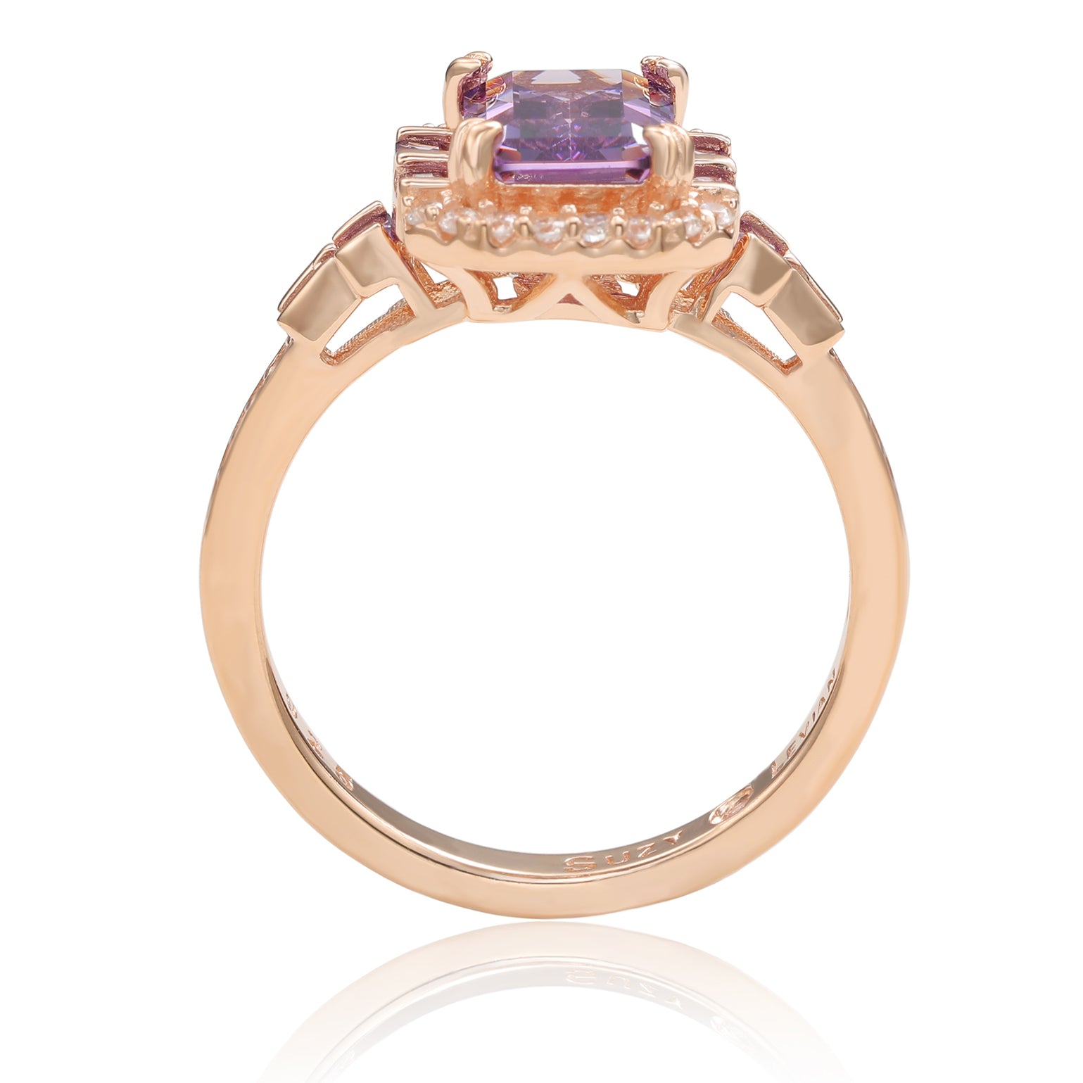 Suzy Levian Rose Sterling Silver Purple Amethyst Emerald Cut Cubic Engagement Ring