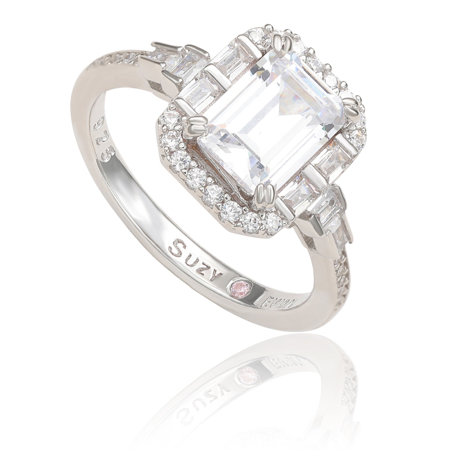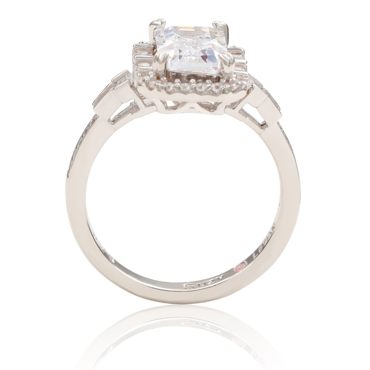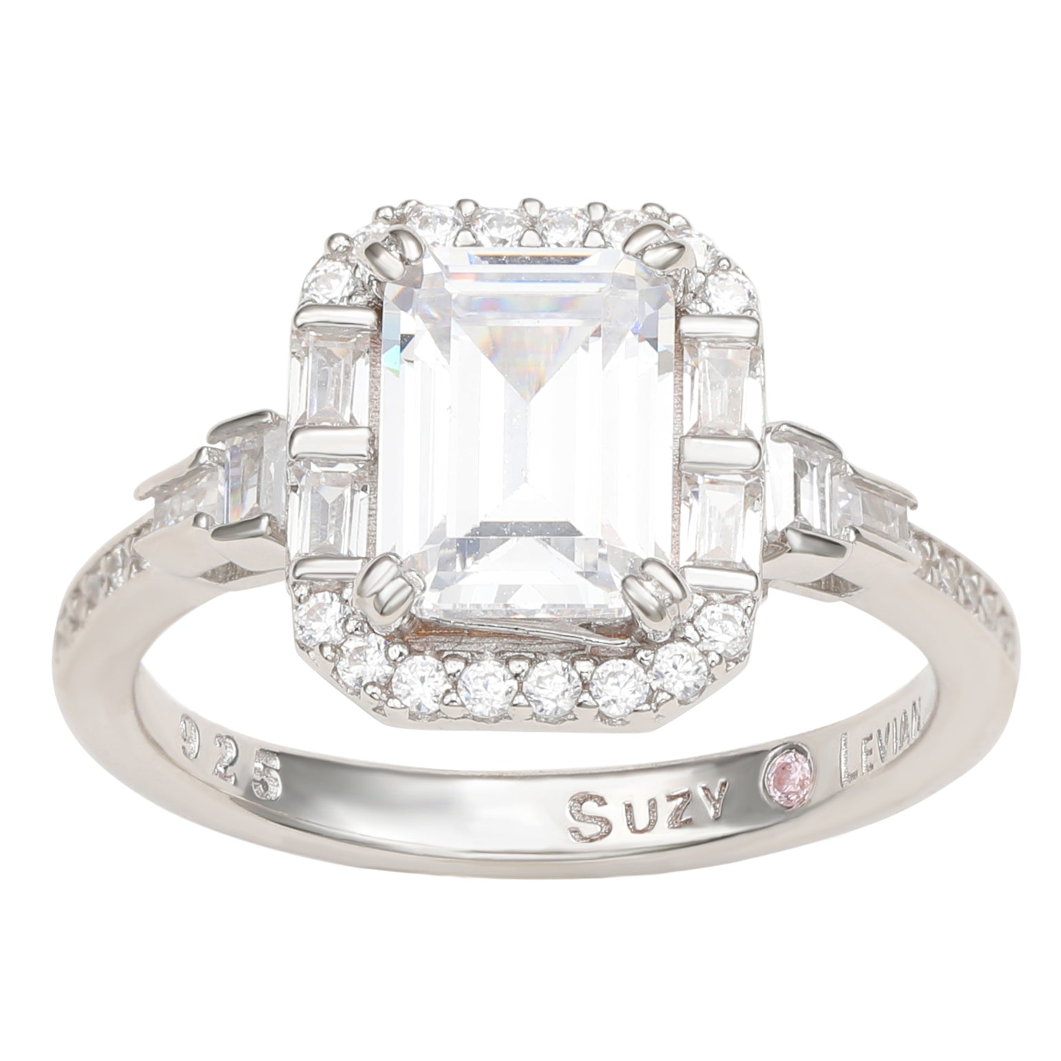 Suzy Levian Sterling Silver Emerald Cut White Cubic Zirconia Engagement Ring