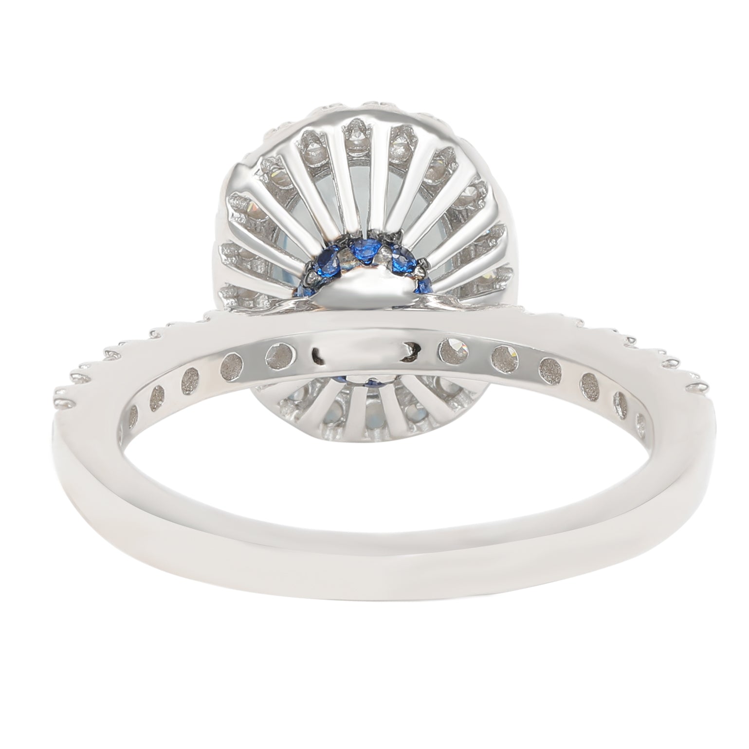 Suzy Levian Sterling Silver Oval Aqua Cubic Zirconia Halo Ring