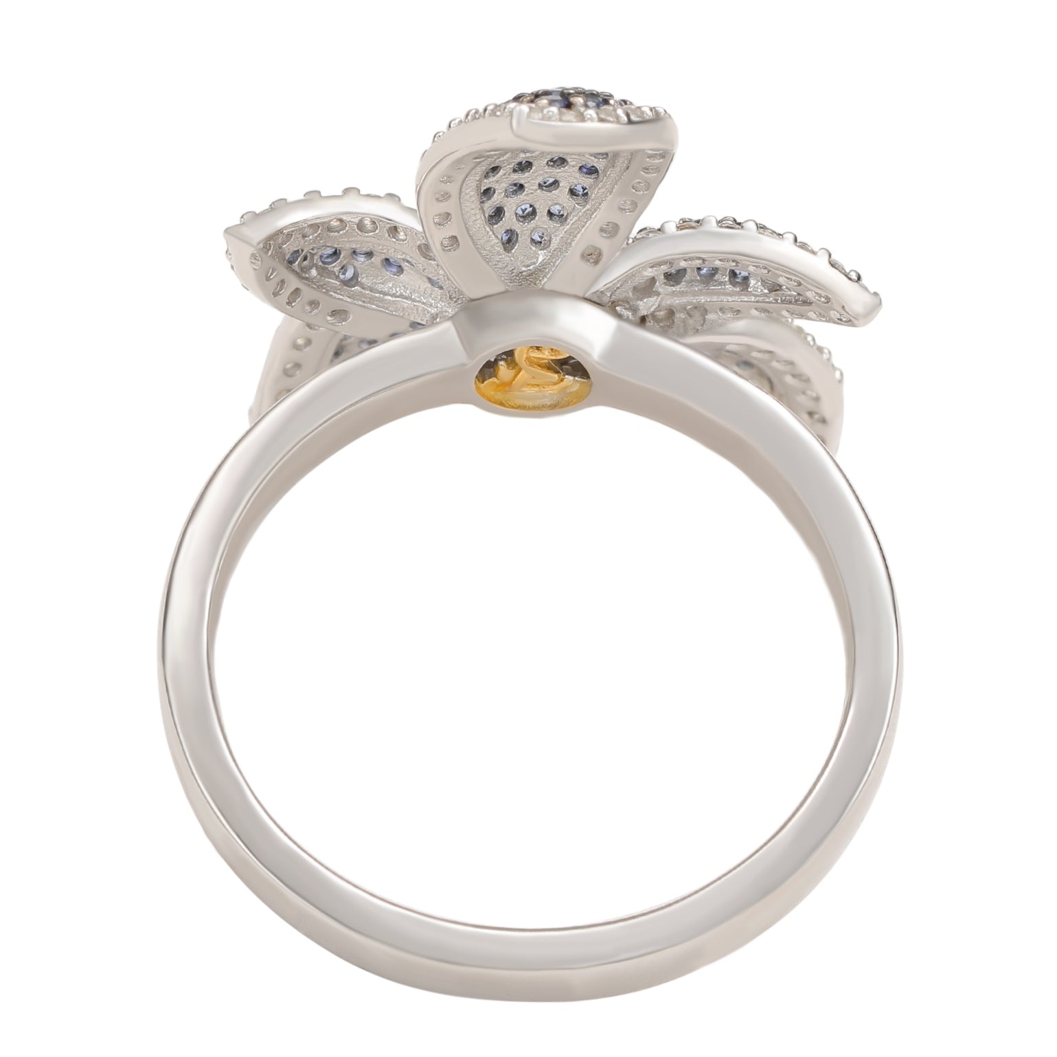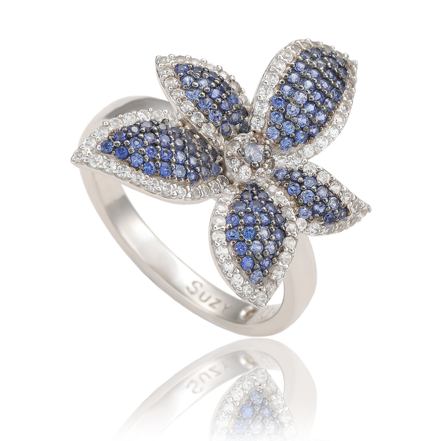 Suzy Levian Sterling Silver Blue Sapphire & White Sapphire Flower Ring