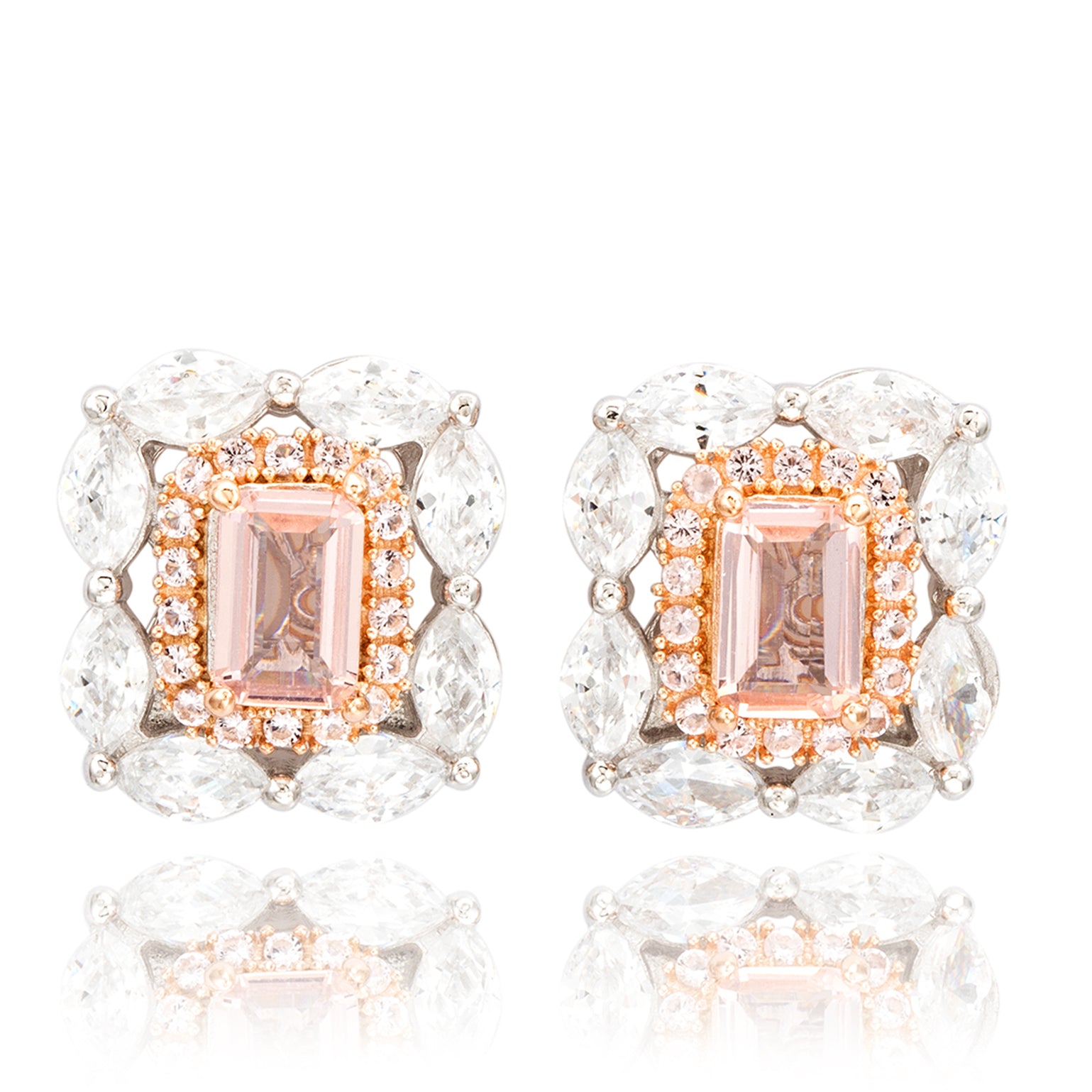 Suzy Levian Two Tone Sterling Silver Multi Cut Pink & White Cubic Zirconia Cluster Earrings