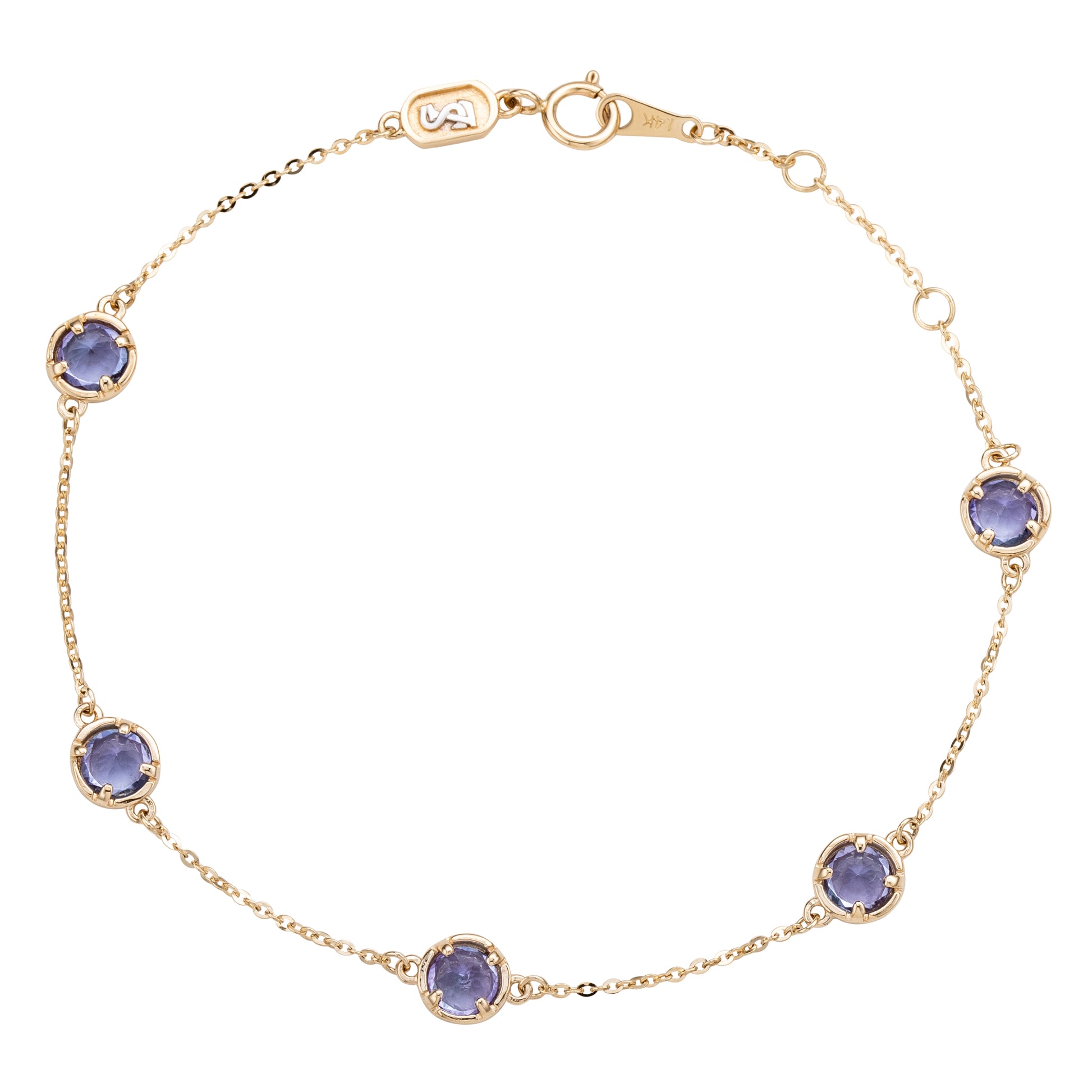 Suzy Levian 14K Yellow Gold 1.25 Cttw Round Cut Tanzanite Station Bracelet