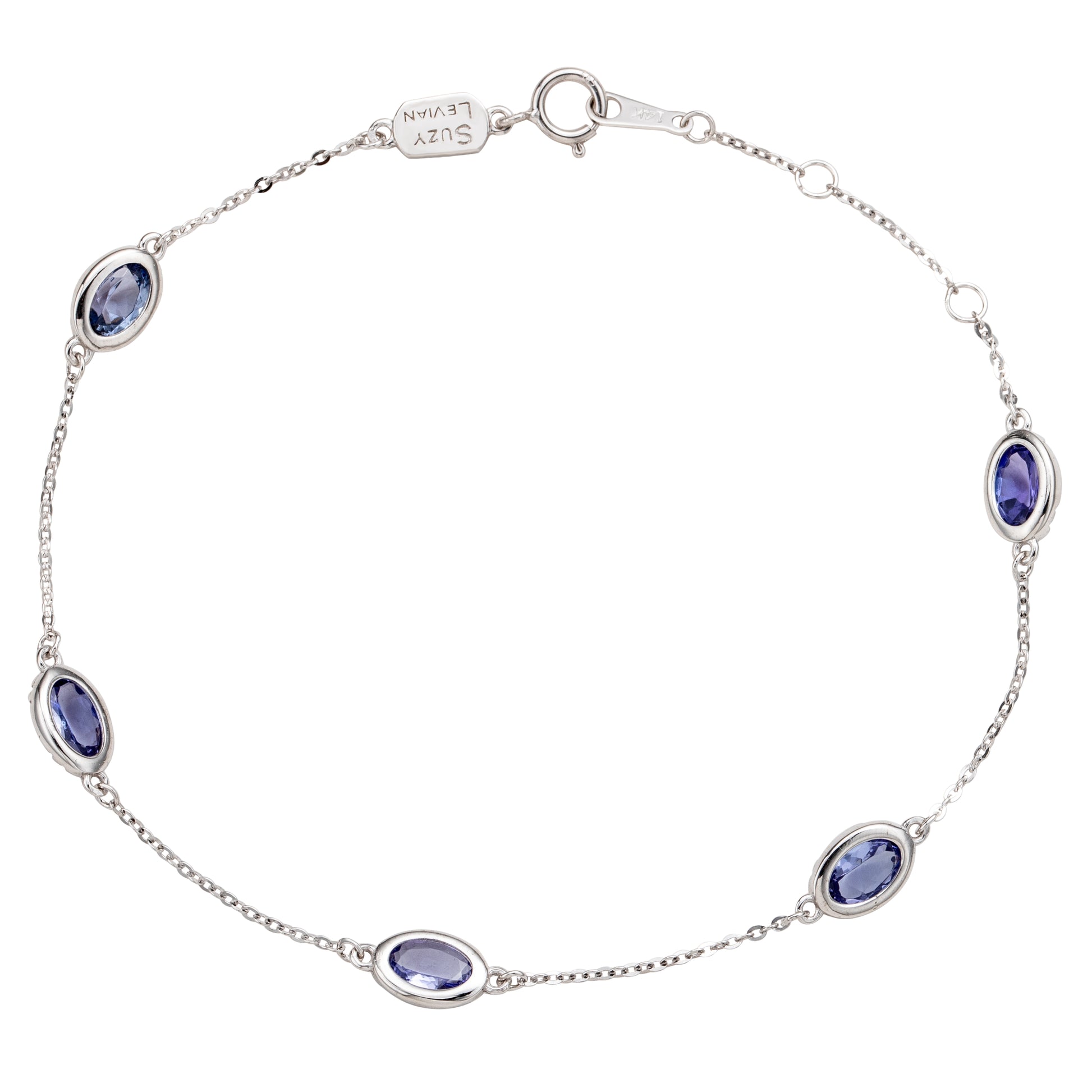 Adorn your hand with sparkling shimmers with this beautiful genuine tanzanite station bracelet. This bracelet can be worn stackable with other bracelets or as a single bracelet, making it the perfect bracelet for every occasion. This bracelet features five oval-cut vibrant genuine tanzanite that is a total of 2.50 cttw, and are bezel set in 14K white gold. This Bracelet is 7" in length, and showcases sparkle & shine from every angle. This bracelet has a spring ring closure with a unique plaque embracing Suzy Levian's 14K yellow gold SL logo. By creating jewelry that is beautiful inside and out. A high polish finish completes the look. This makes a great gift to give for a special loved one on any occasion, such as graduation, birthdays, holiday gift, bat- mitzvahs, and anniversaries!
