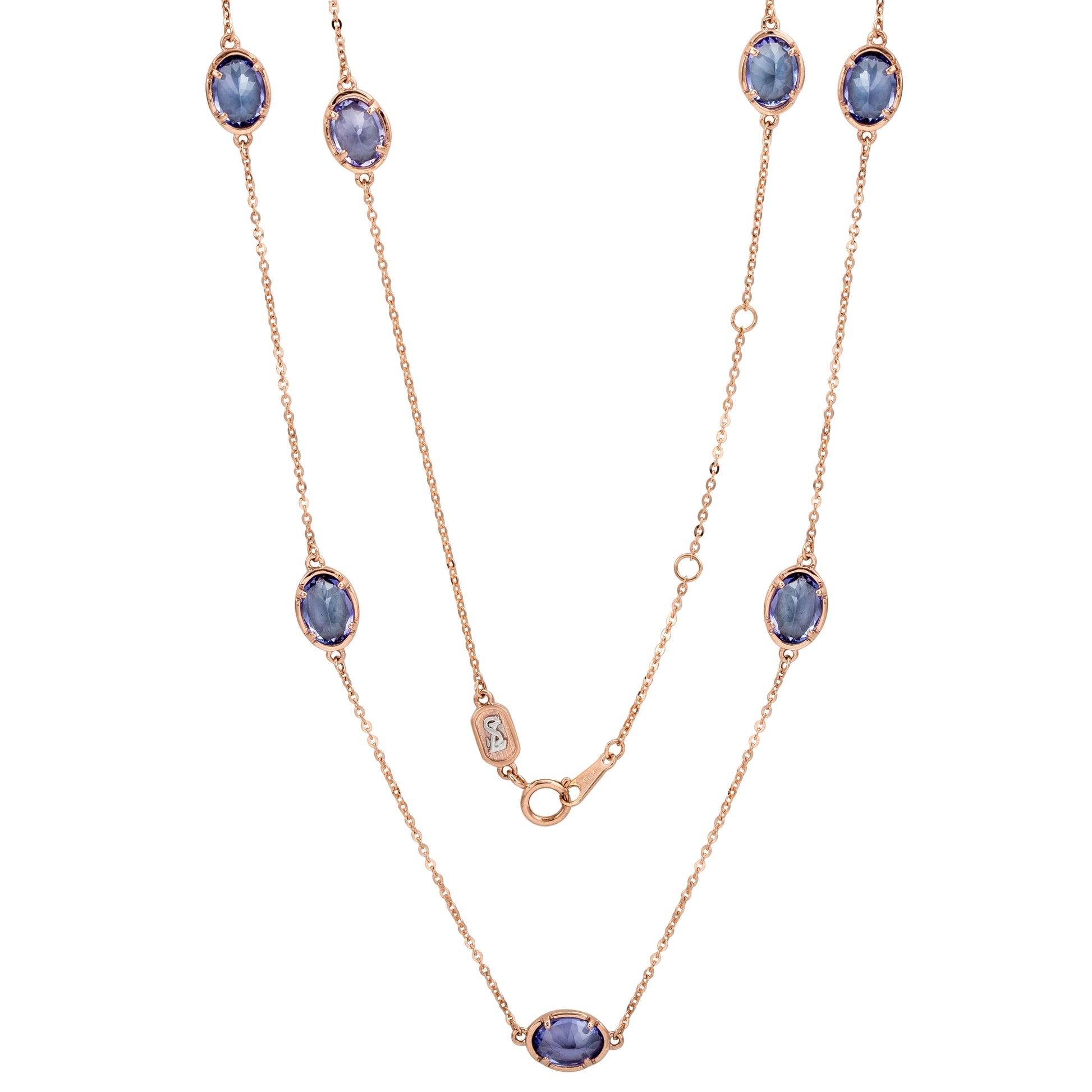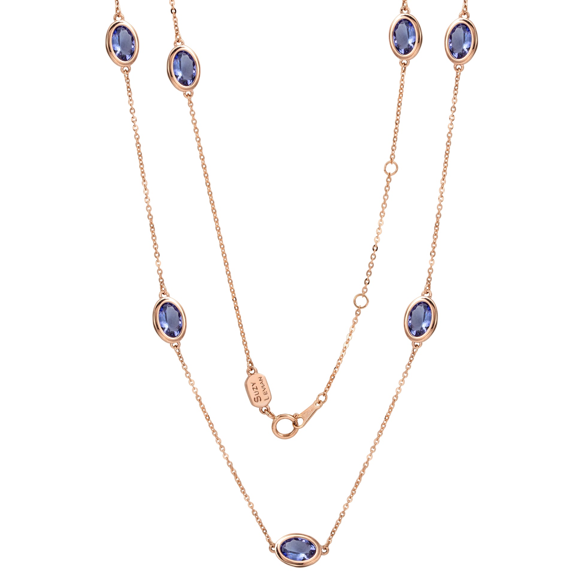 Suzy Levian 14K Rose Gold 1 Cttw Oval Cut Tanzanite Station Necklace