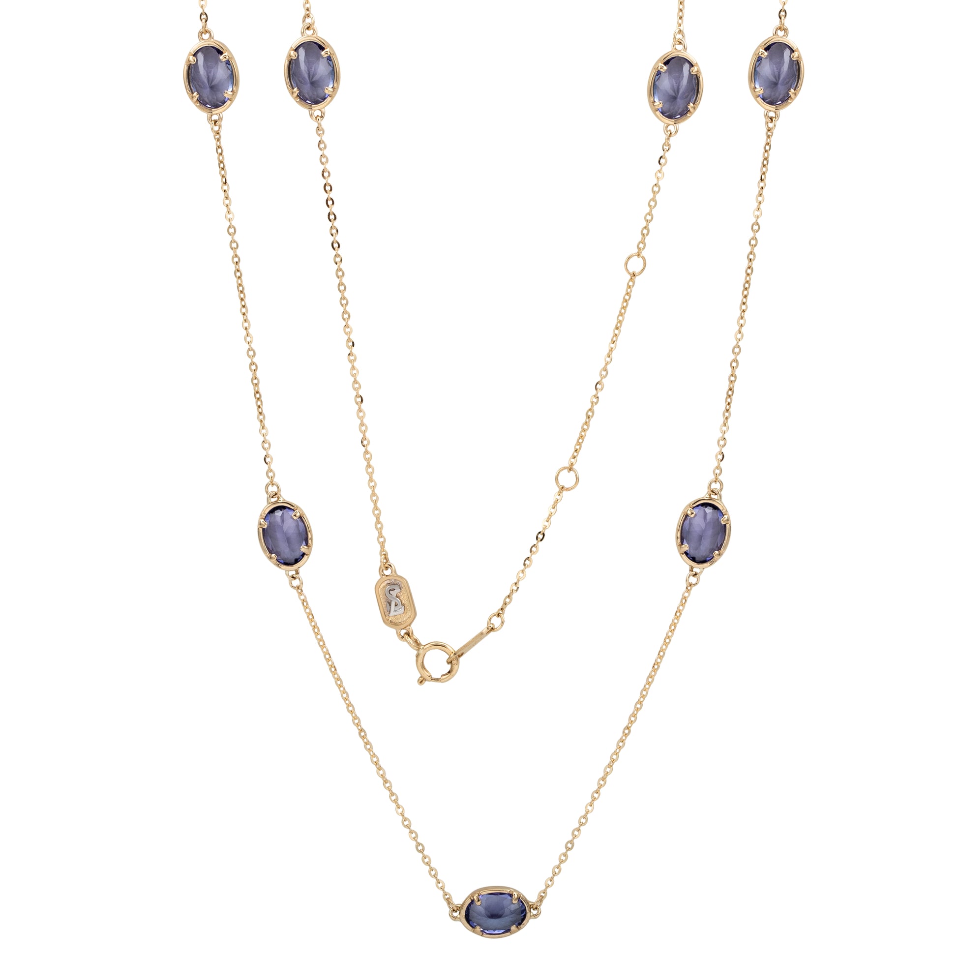 Suzy Levian 14K Yellow Gold 1 Cttw Oval Cut Tanzanite Station Necklace