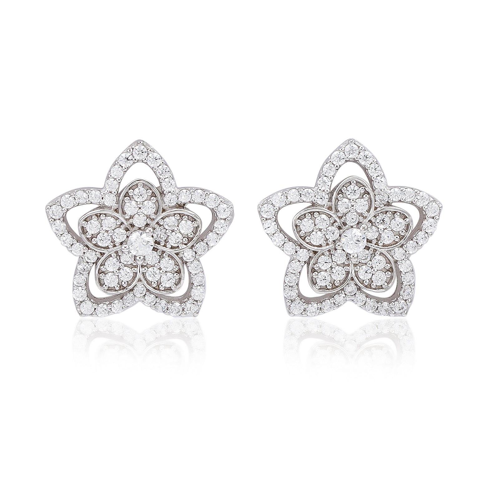 Suzy Levian Sterling Silver White Cubic Zirconia Pave Flower Stud Earrings