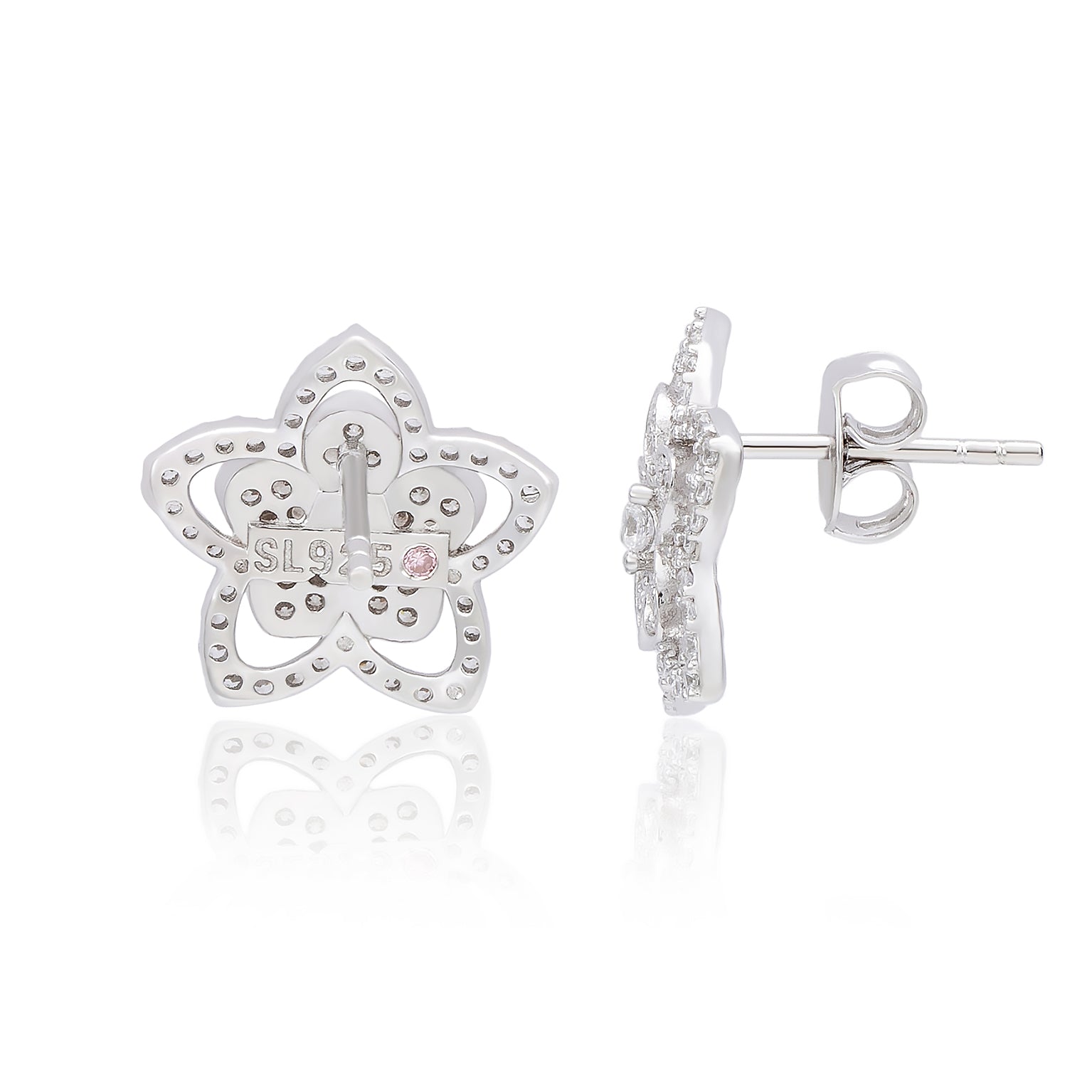 These gorgeous Suzy Levian earrings feature timeless beauty in a breathtaking design. These earrings feature a whimsical flower design of white pave round cubic zirconia gemstones which are set in sterling silver with a high polish finish for extra shine. These earrings are perfect for all occasions. These earrings were created with a message. By creating jewelry that is beautiful inside and out, Suzy Levian sets an SL logo at the back of earring to inspire women to let their beauty shine from bottom to top.