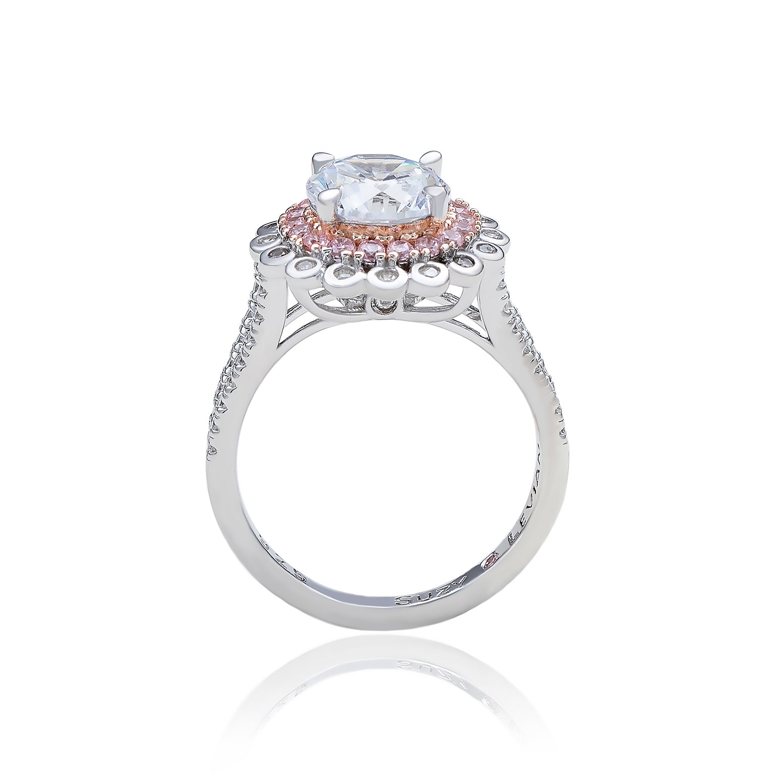 Suzy Levian Sterling Silver White & Pink Cubic Zirconia Engagement Ring