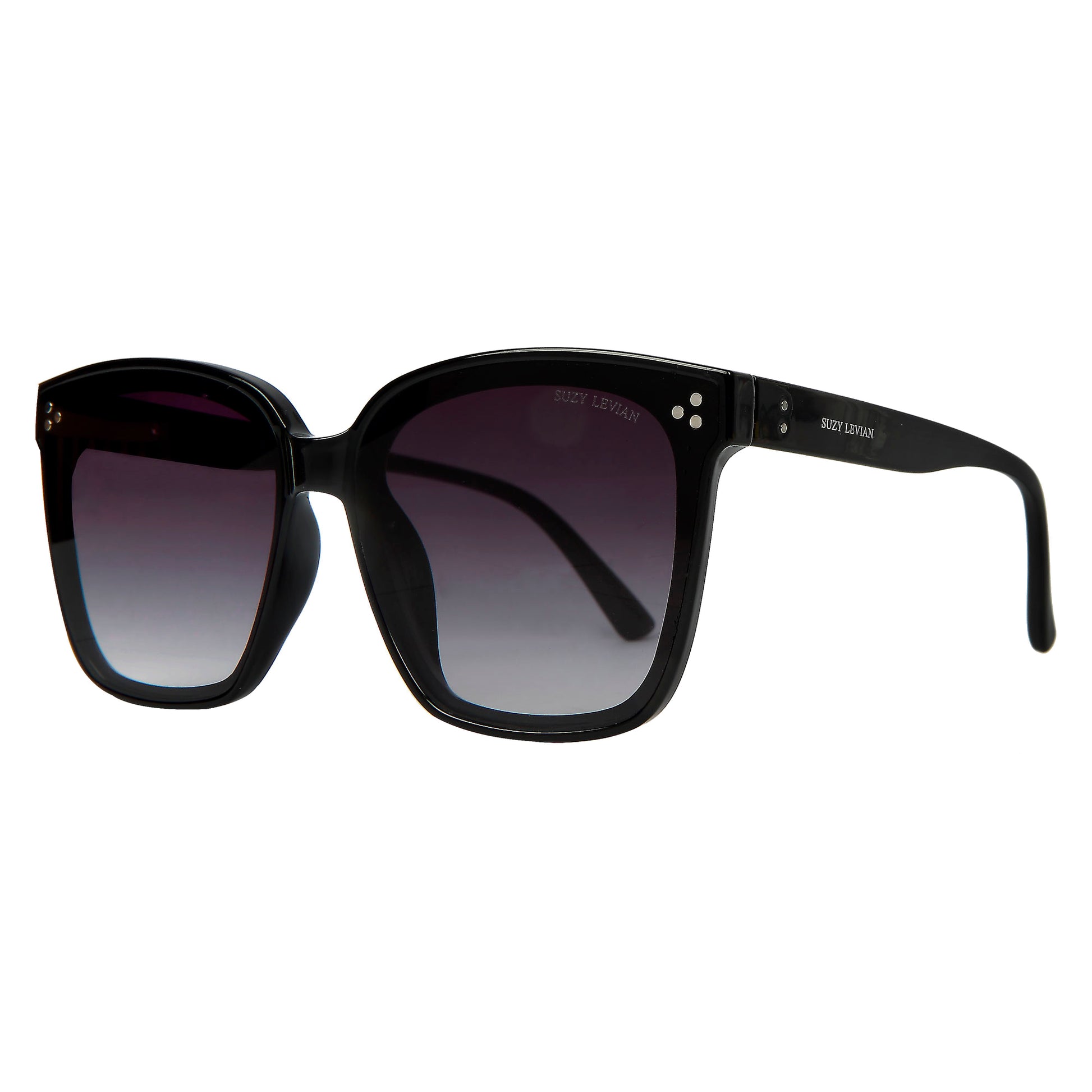 Suzy Levian Women's Black Oversize Square Lens Silver Accent Sunglasses